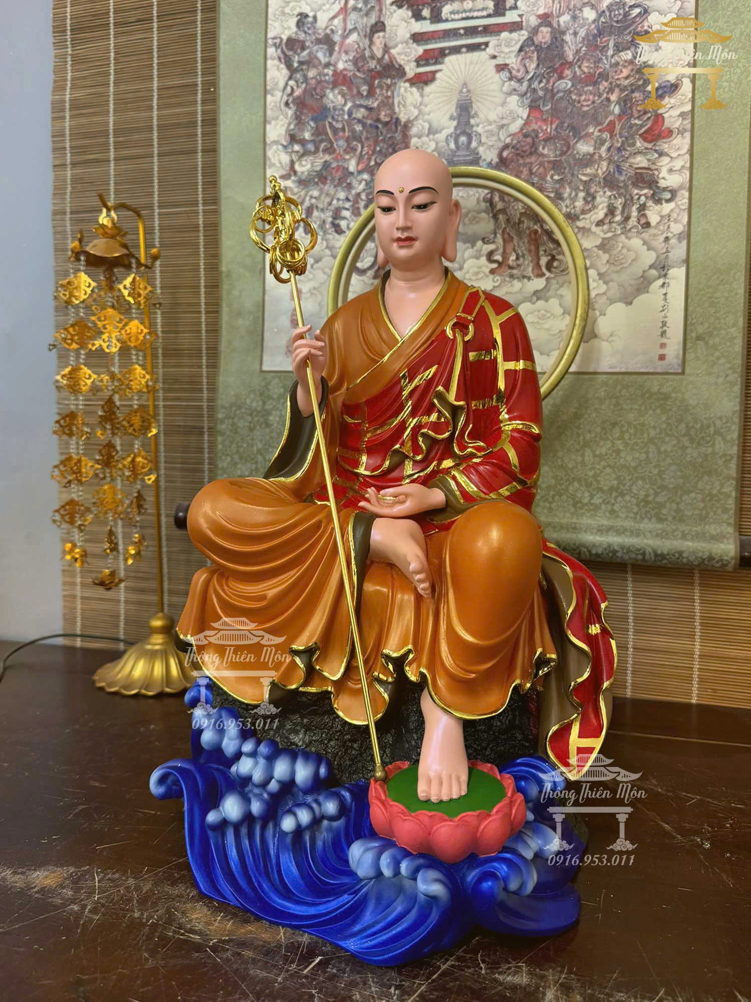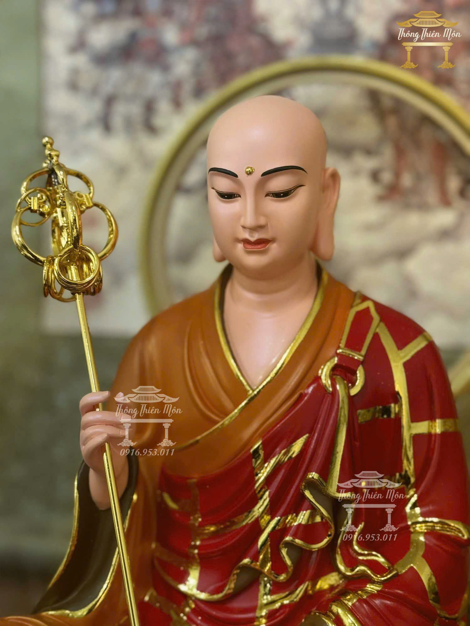 Tôn tượng Địa Tạng Tự Tại Bồ Tát, Kích thước 45cm, Màu cam đỏ