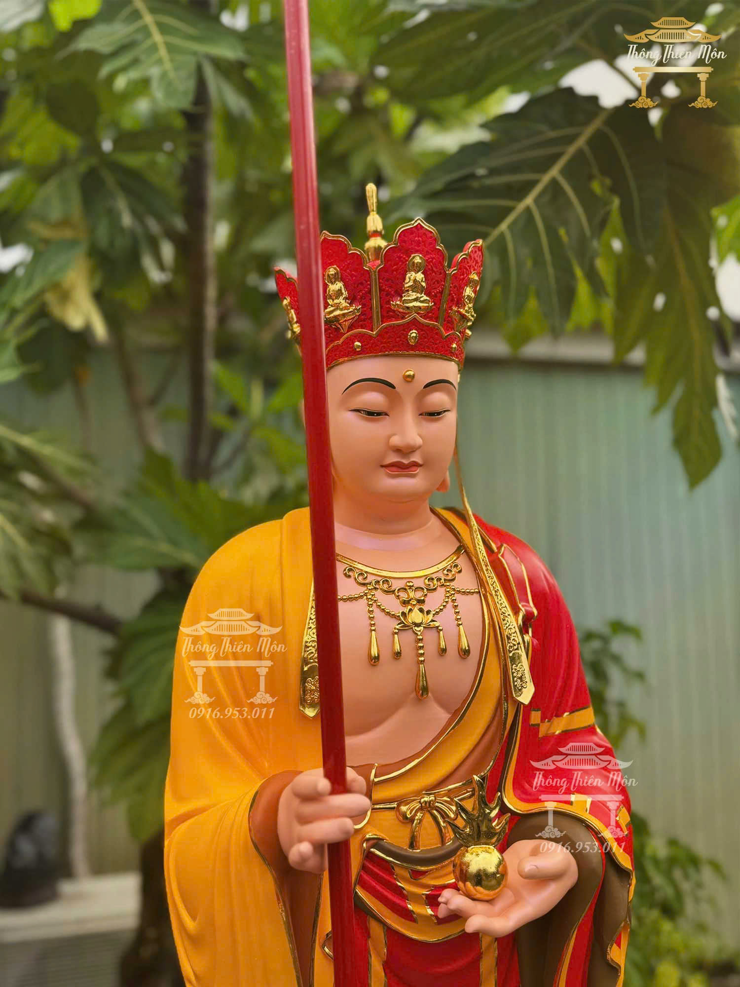 Tượng Địa Tạng Vương Bồ Tát, Kích thước 120cm, Y phước điền đỏ + vàng