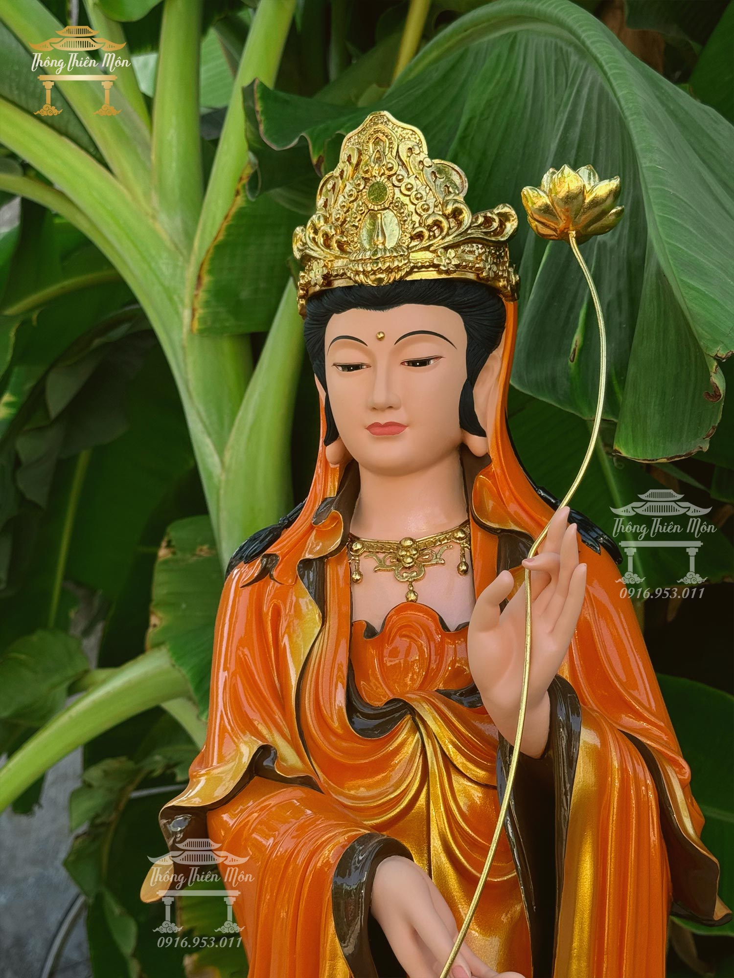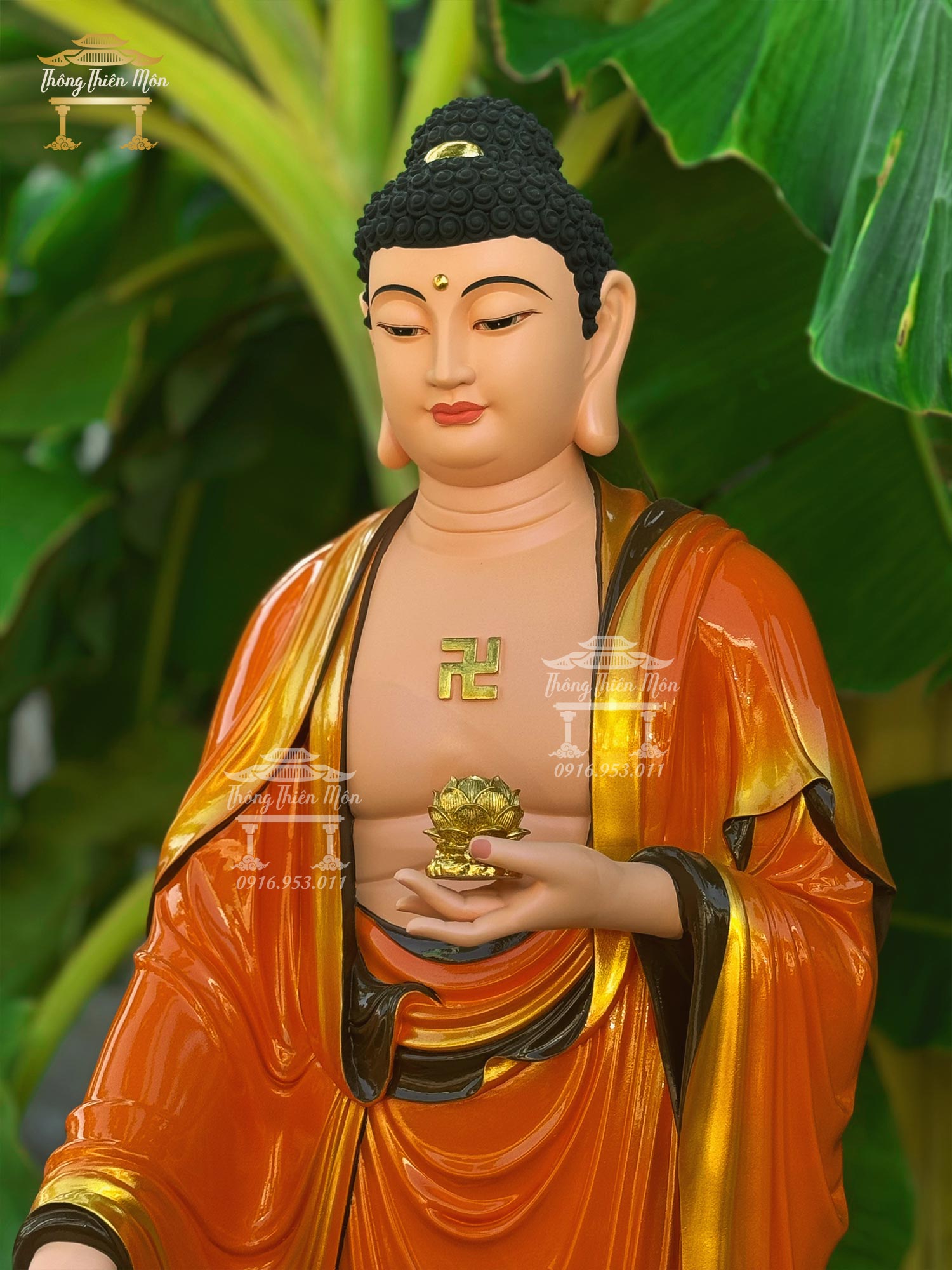 Tượng Tây Phương Tam Thánh, Kích thước 120cm, Sơn khoáng cam