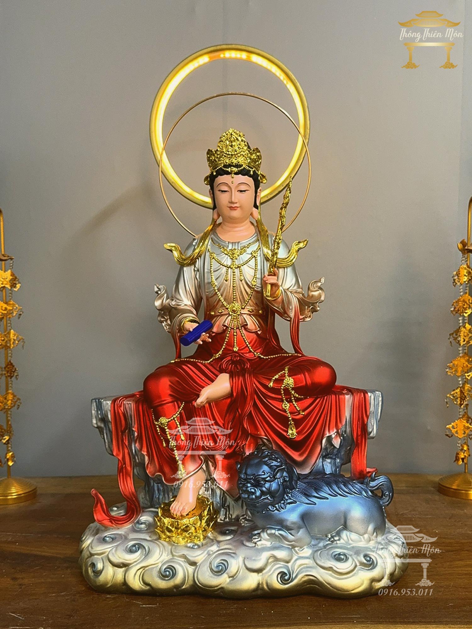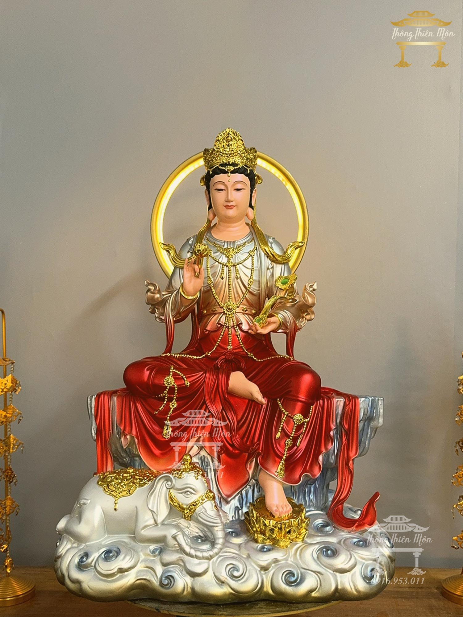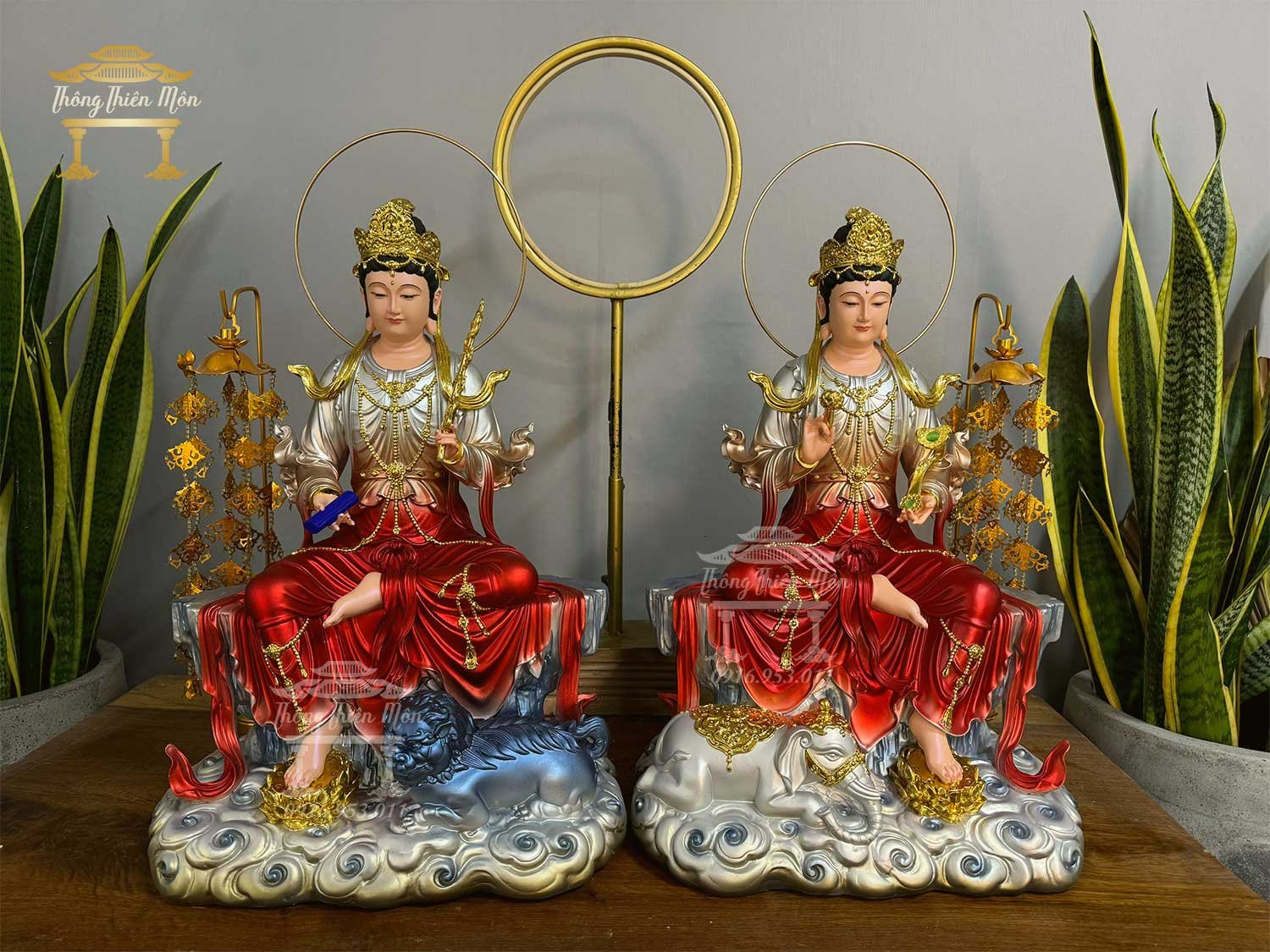 Tượng Văn Thù - Phổ Hiền Bồ Tát, Kích thước 48cm, Phối màu Đỏ