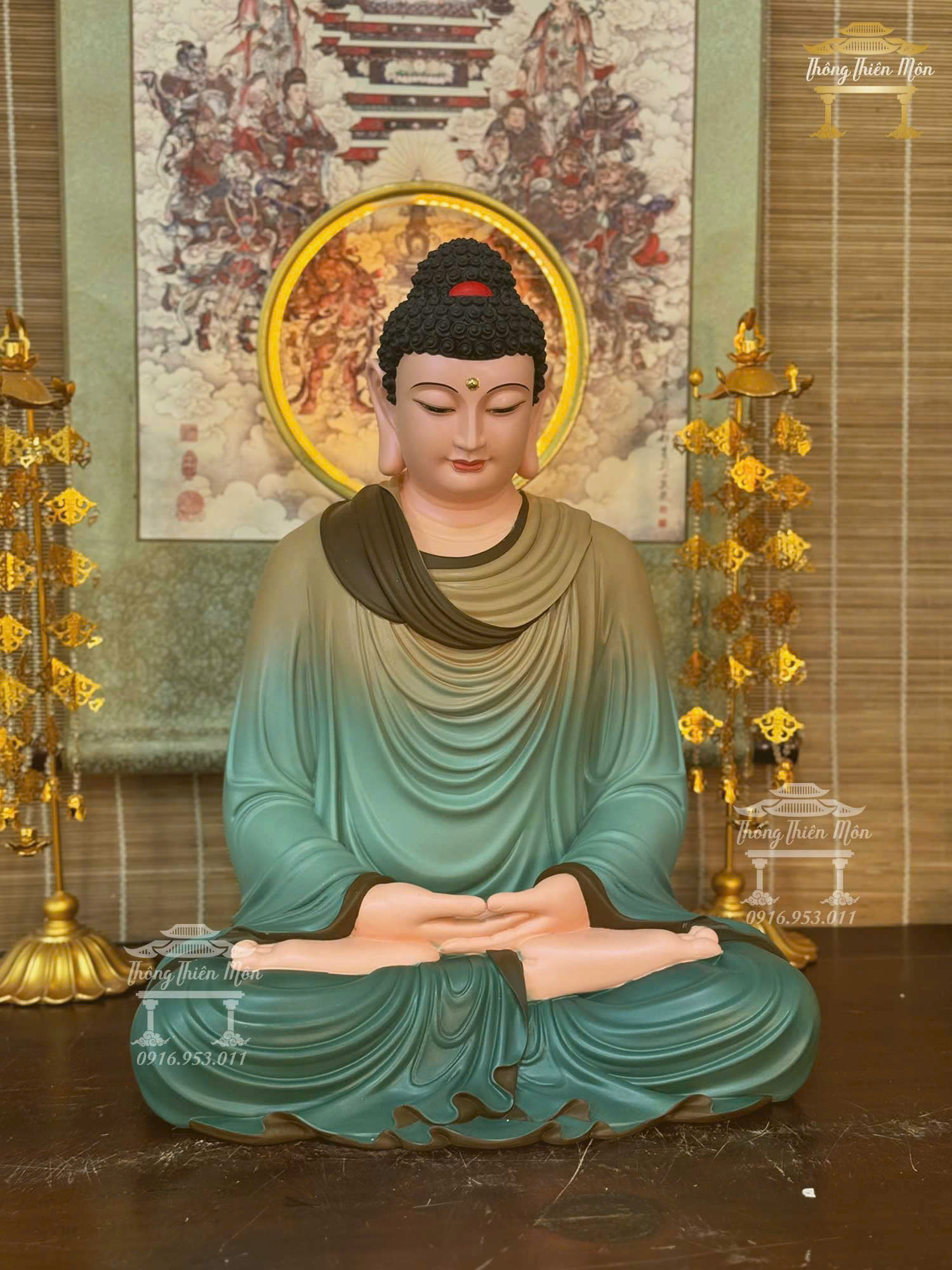 Kim thân tôn tượng Bổn Sư Thiền Định, Kích thước 52cm, Màu xanh