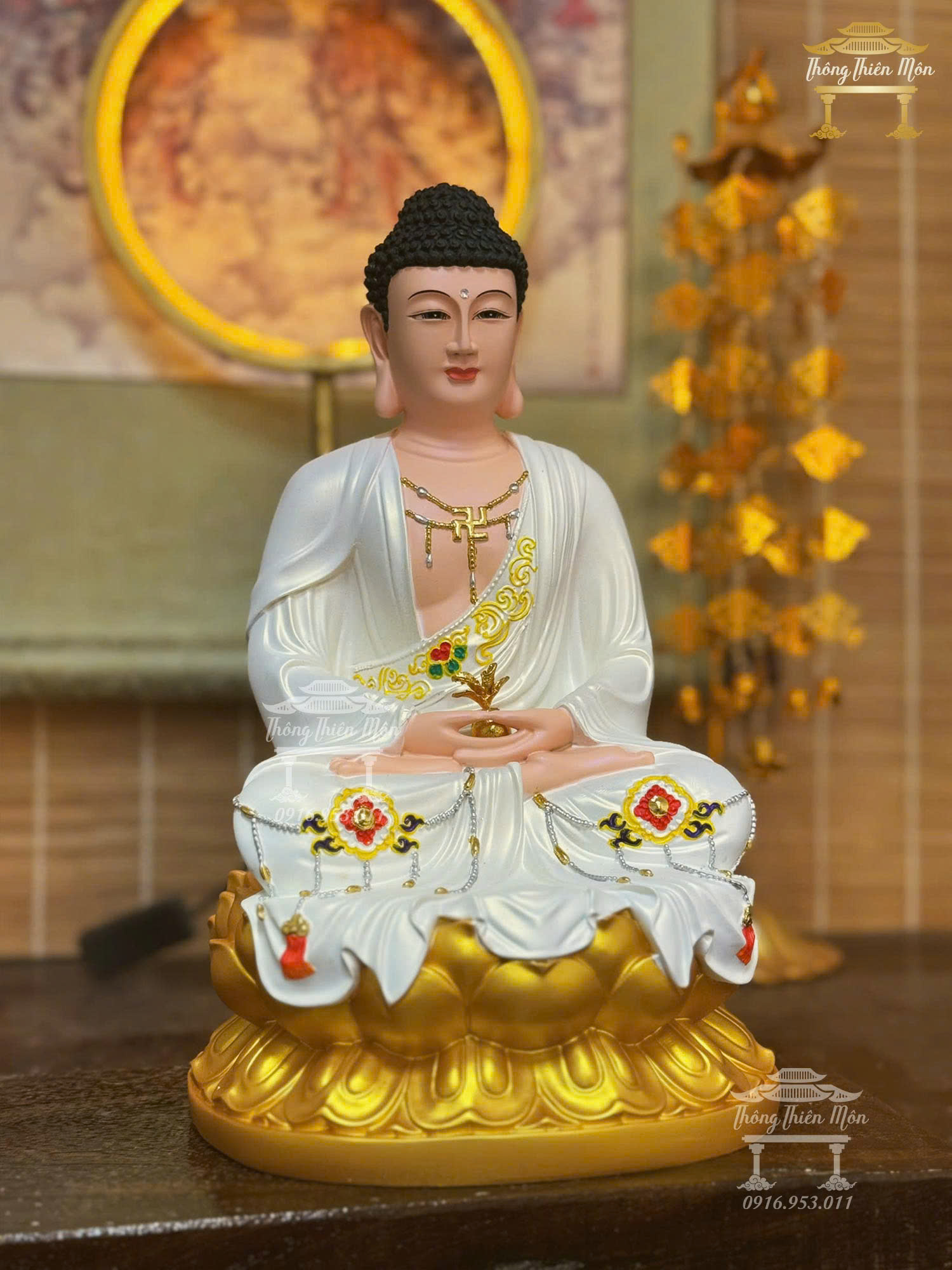 Tôn tượng Dược Sư hoa văn, Kích thước 30cm, y trắng