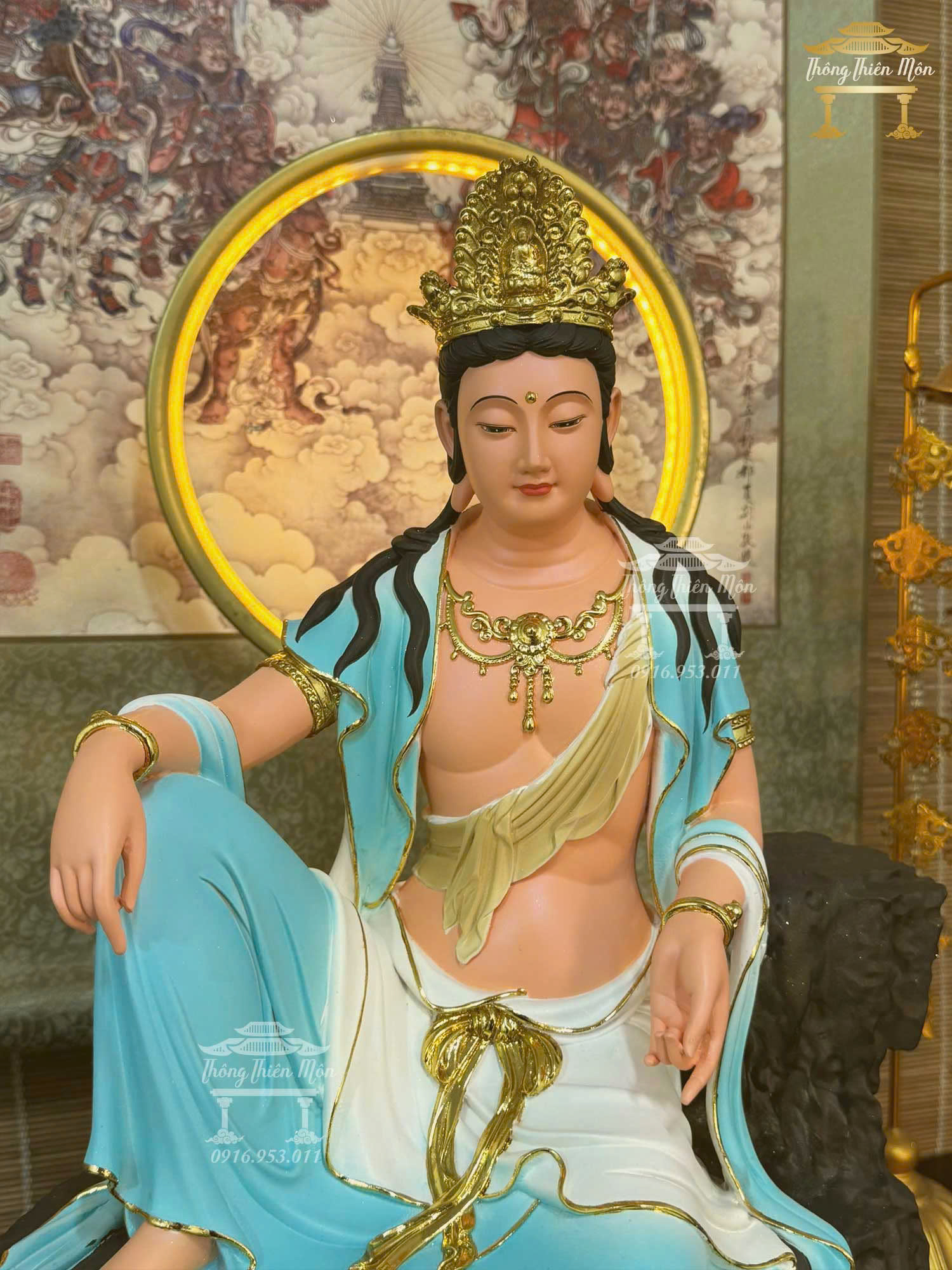Tôn tượng Quan Âm Tự Tại, Phối xanh dương, Kích thước 48cm