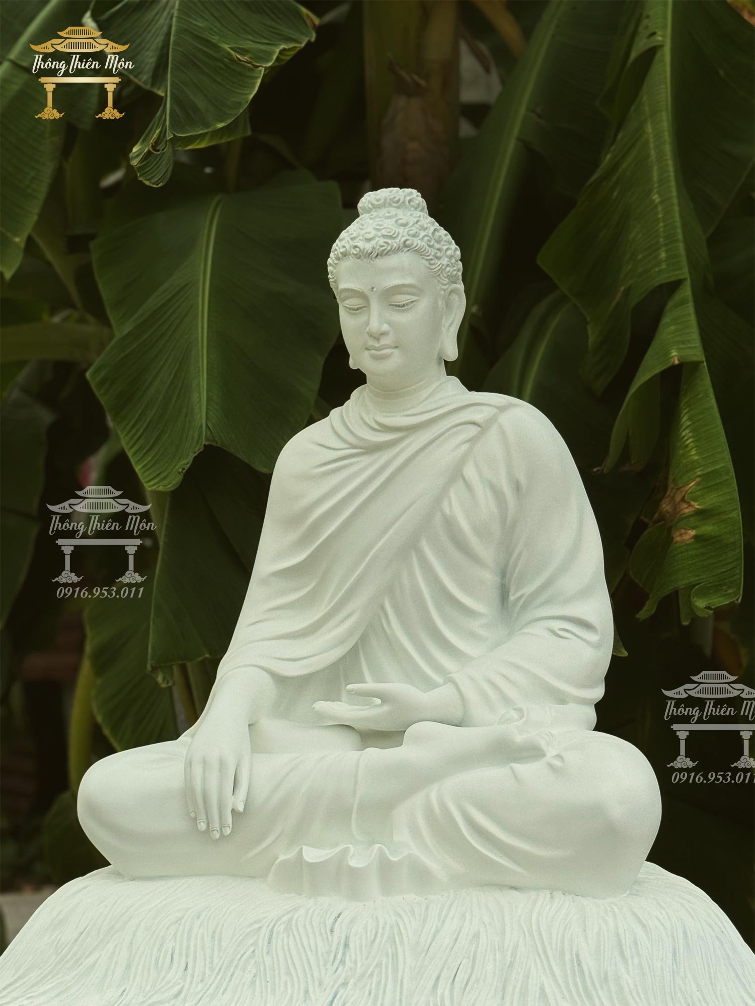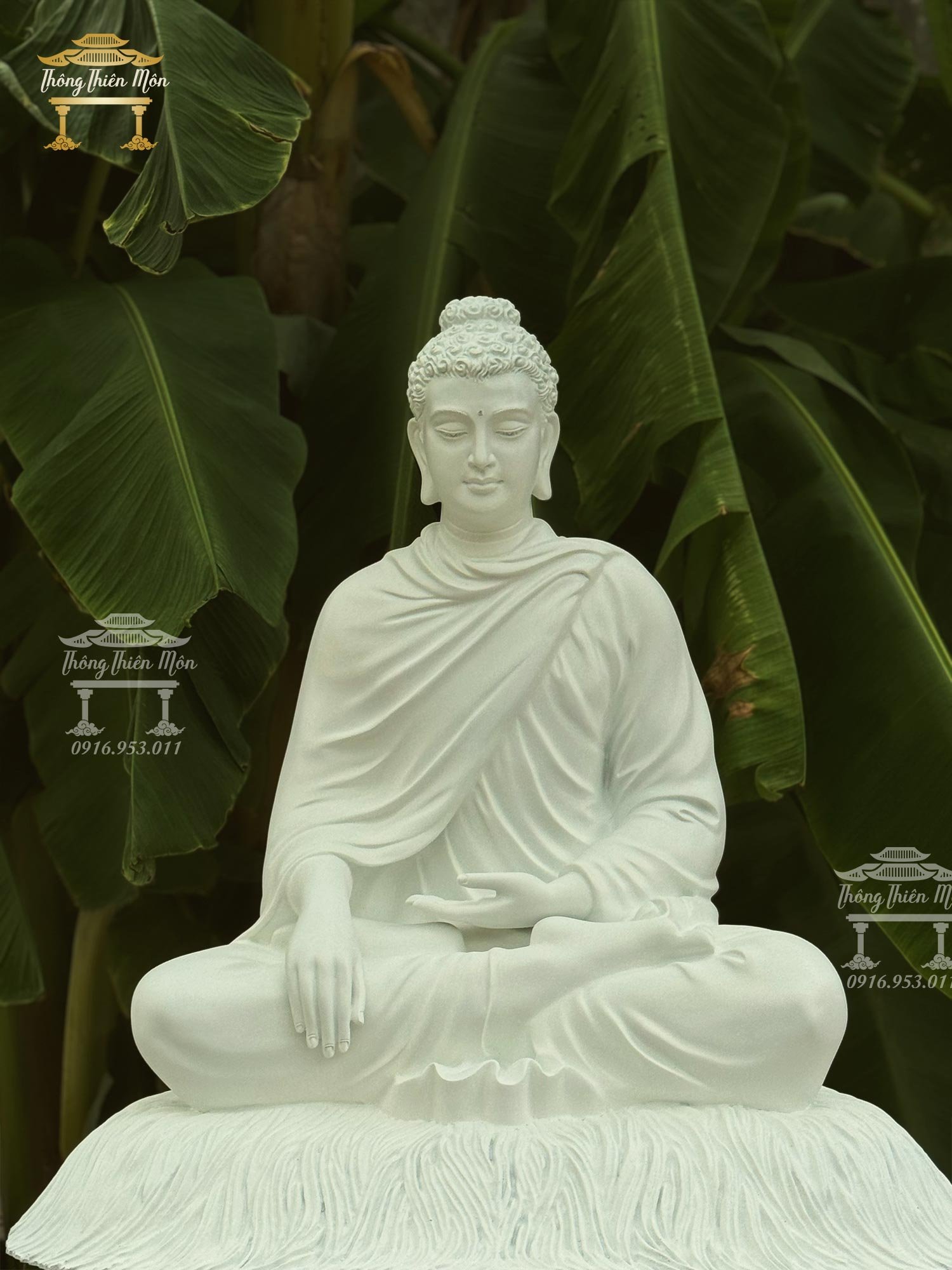 Tượng Bổn Sư Thích Ca Ấn Địa Xúc, Cao 85cm, Màu trắng