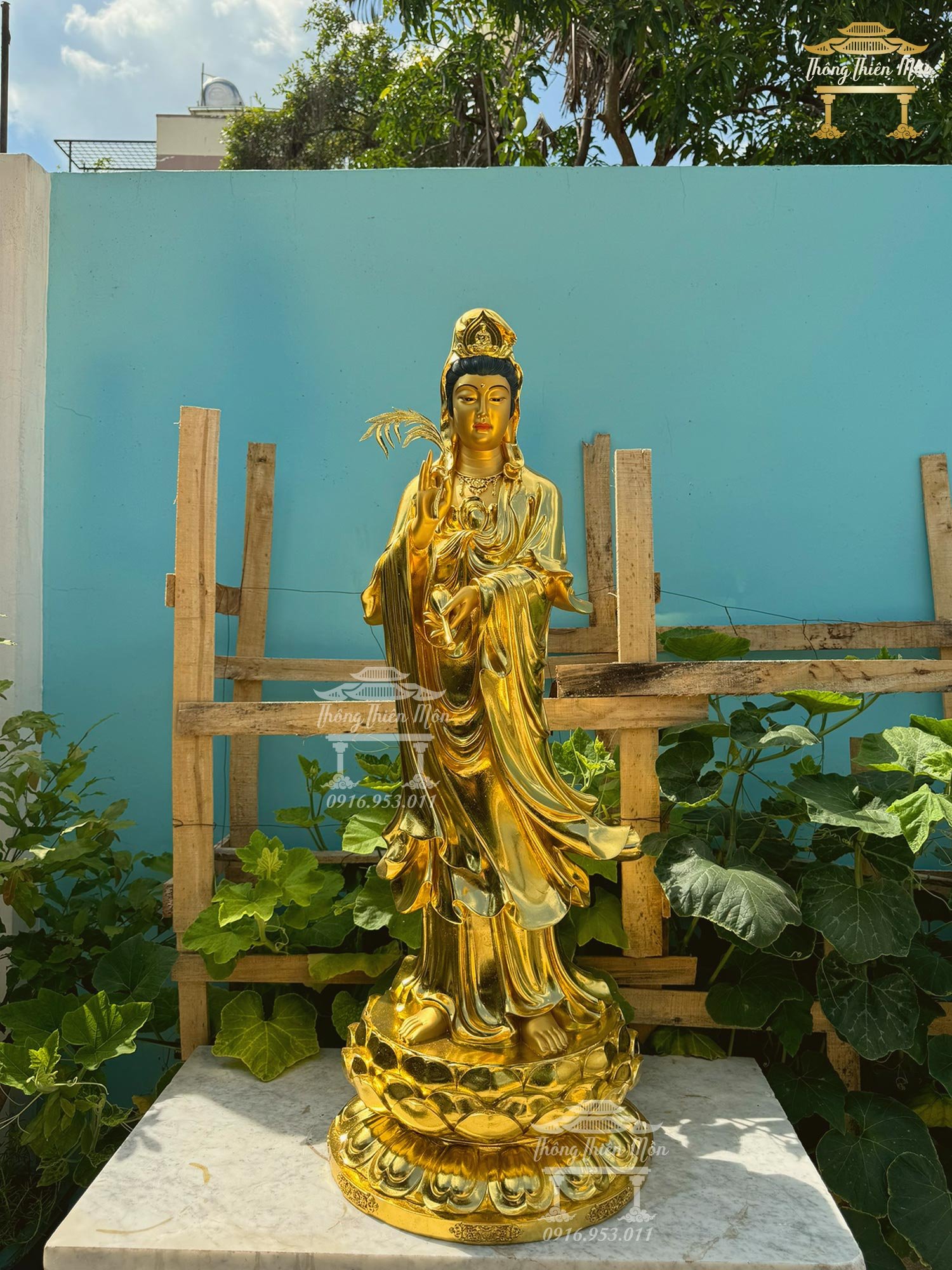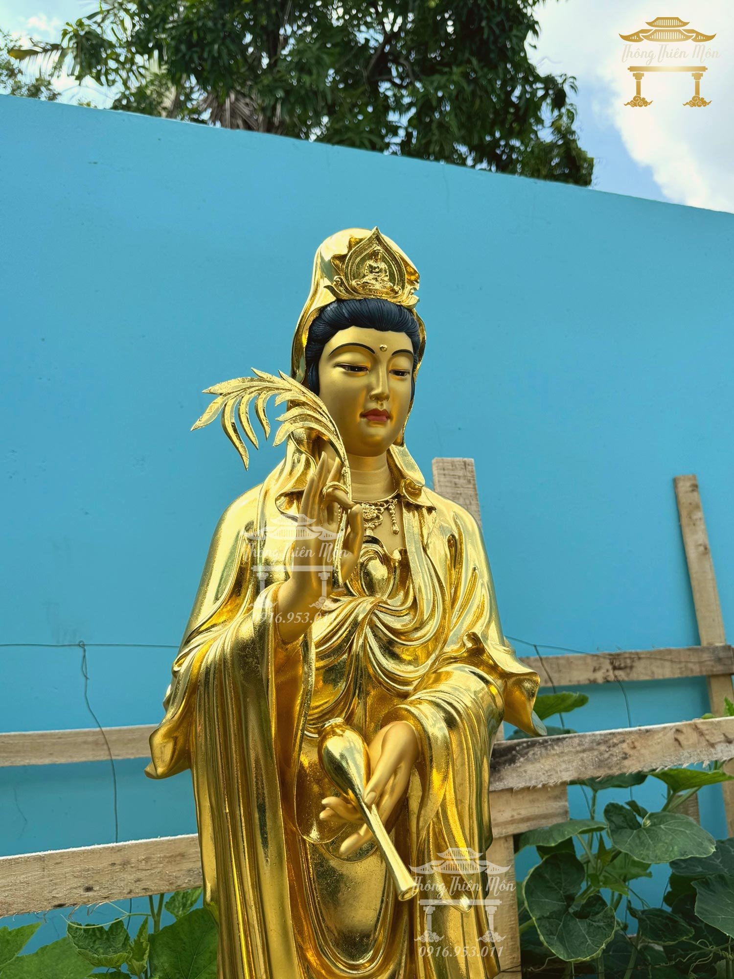 Tượng Quan Âm Bồ Tát, Kích thước 120cm, Mạ vàng, Da giả đồng