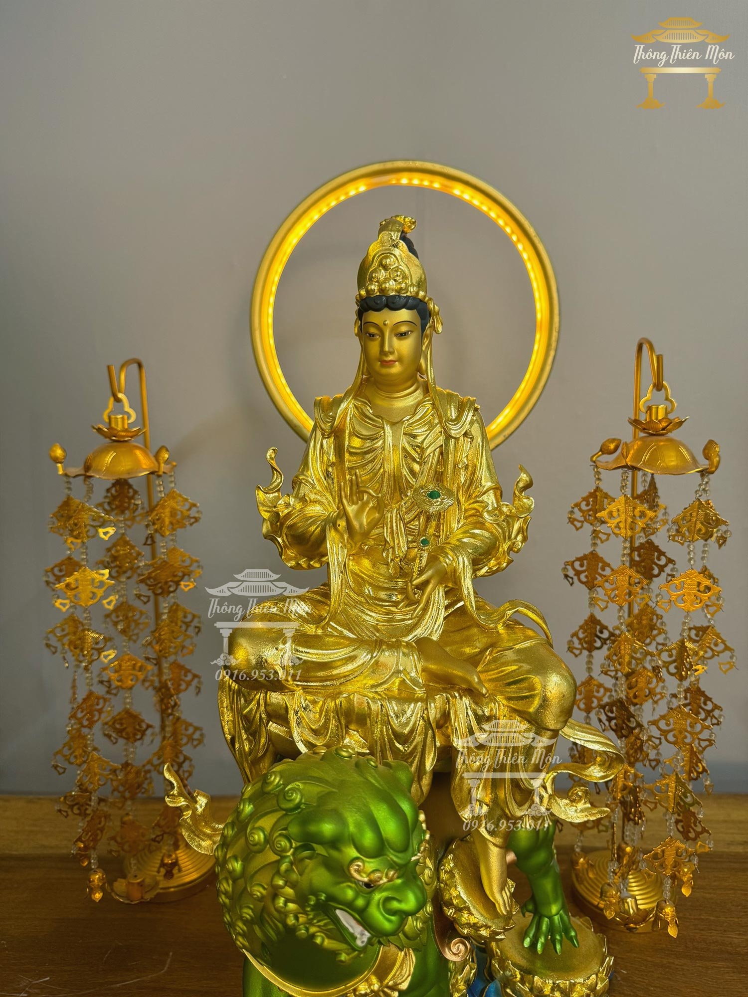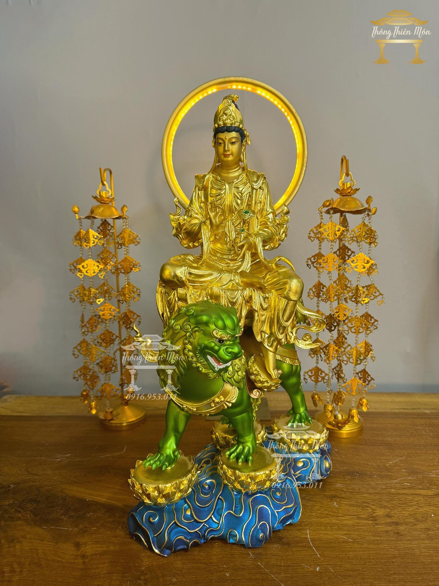 Tượng Văn Thù - Phổ Hiền Bồ Tát, Kích thước 50cm, Sơn phối màu kết hợp mạ vàng