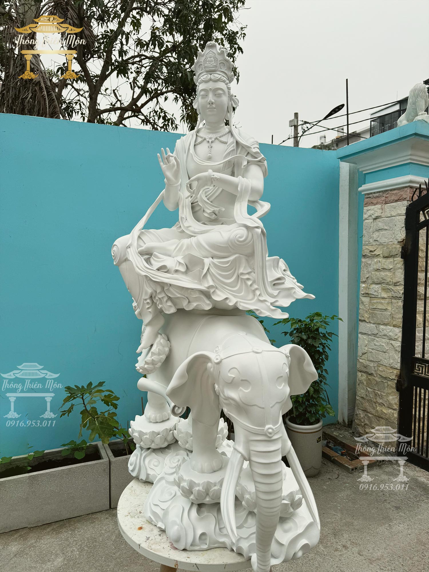 Tượng Văn Thù - Phổ Hiền Bồ Tát, Màu trắng ngọc trai, kích thước 140cm