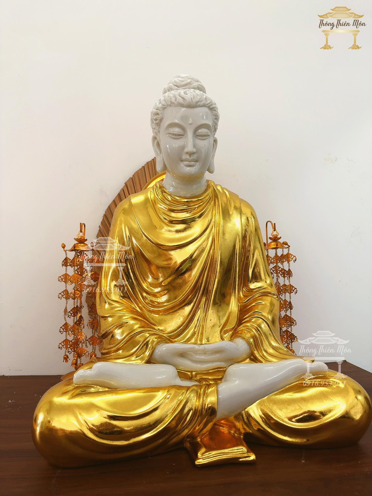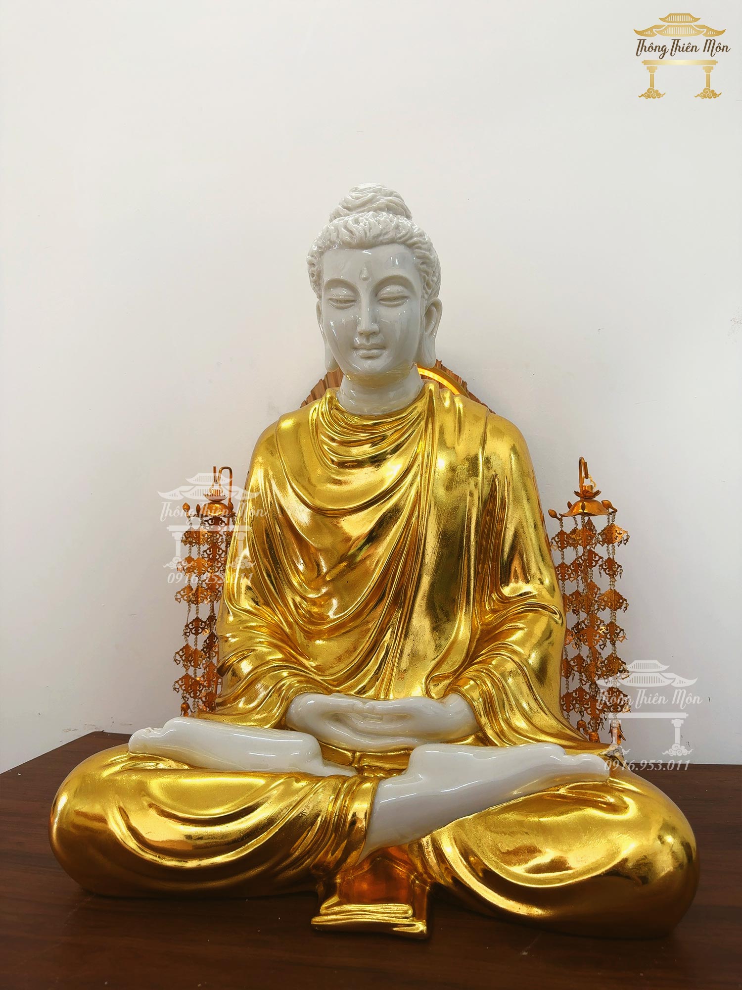 Kim Thân Tượng Bổn Sư Thiền Định, chất liệu Bạch Ngọc, kích thước 75cm