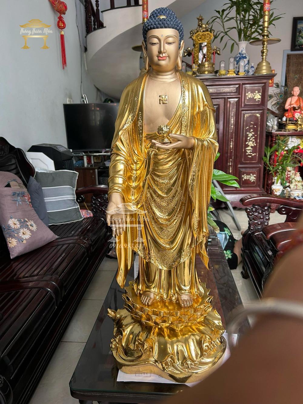 Tôn tượng A di da - 90cm - Mạ vàng, da giả đồng