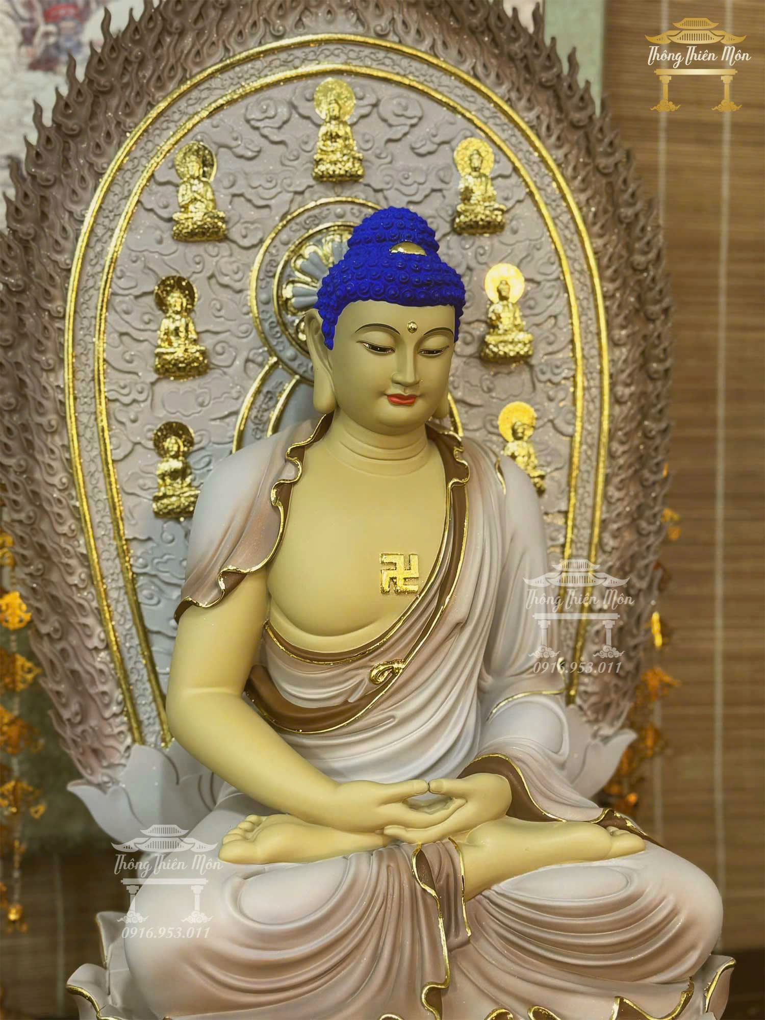 • Tôn Tượng Ngồi đế sen, sơn khoáng viền vàng