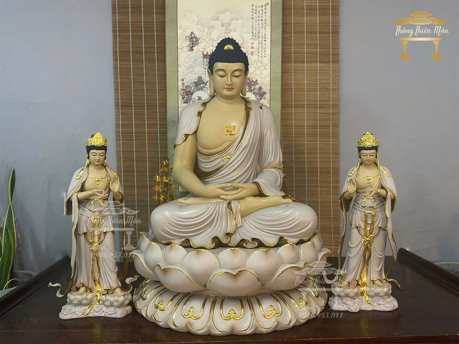 Tôn tượng A Di Đà, Kích thước 90cm, Sơn khoáng viền vàng