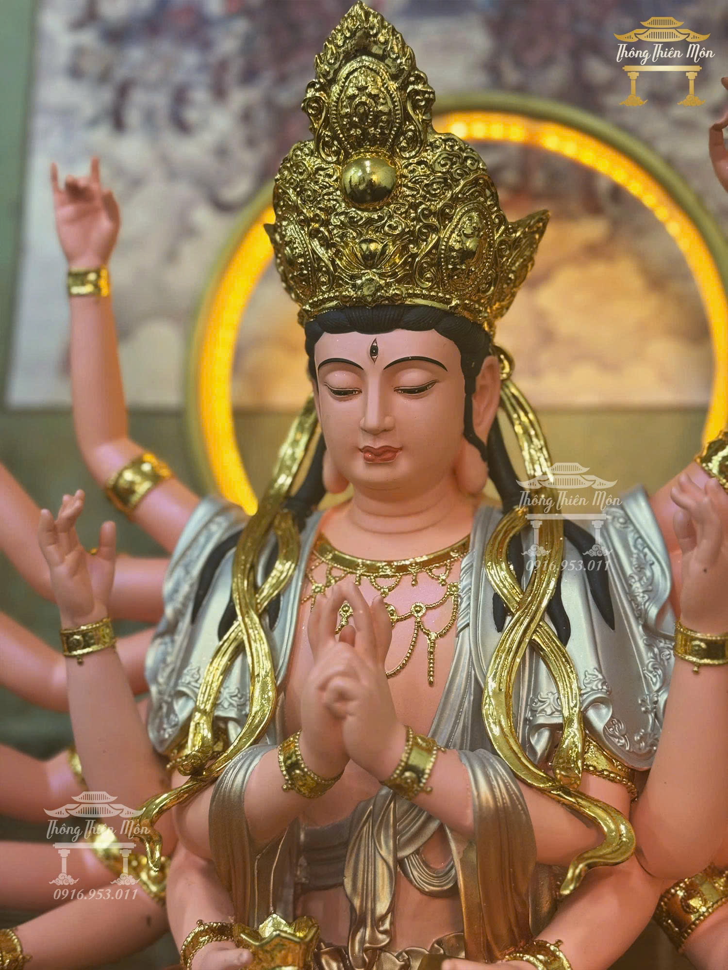 Tôn tượng Phật Mẫu Chuẩn Đề, phối màu nâu vàng, Kích thước 40cm