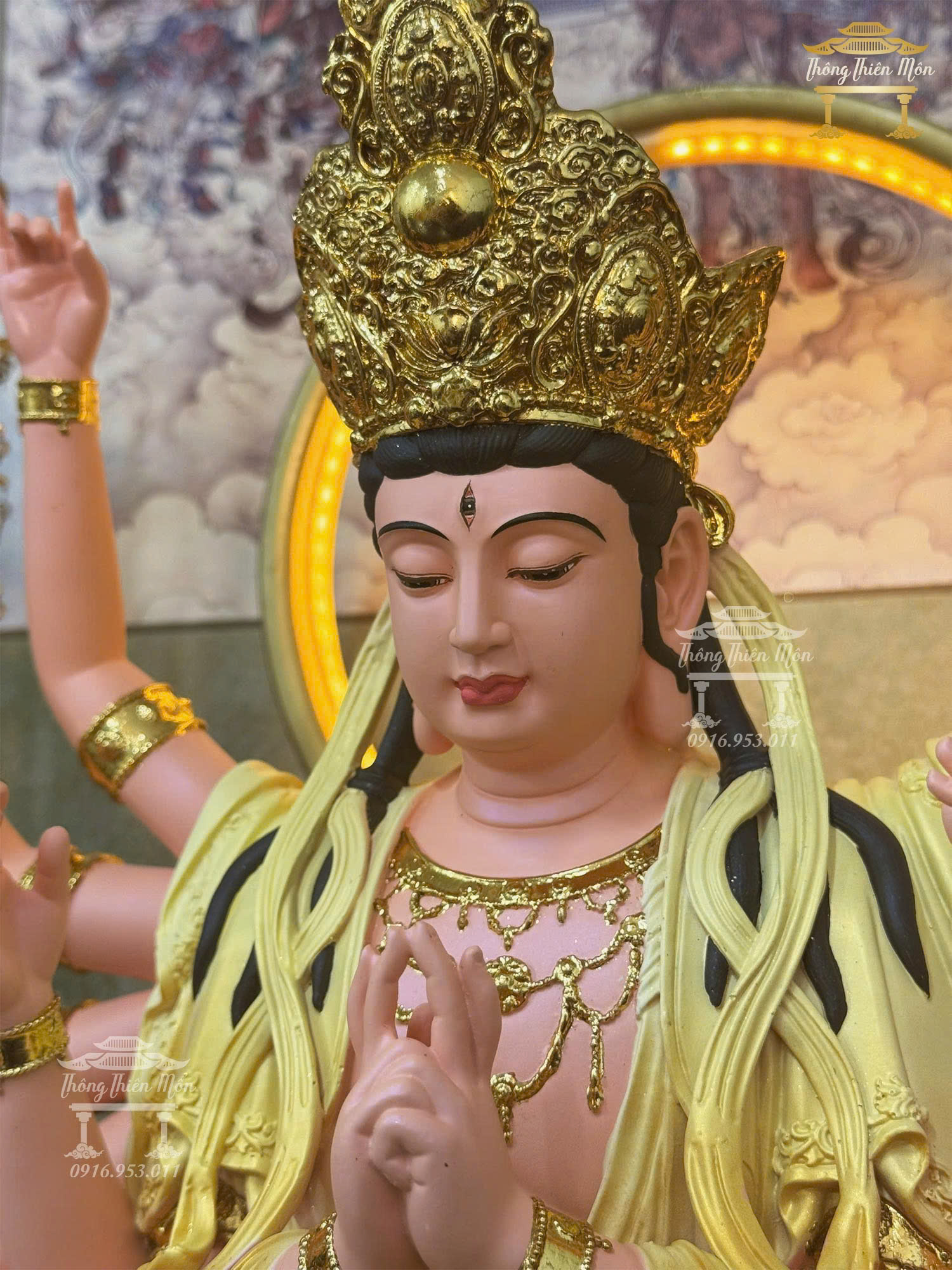 Tôn tượng Phật Mẫu Chuẩn Đề, phối màu vàng, Kích thước 40cm