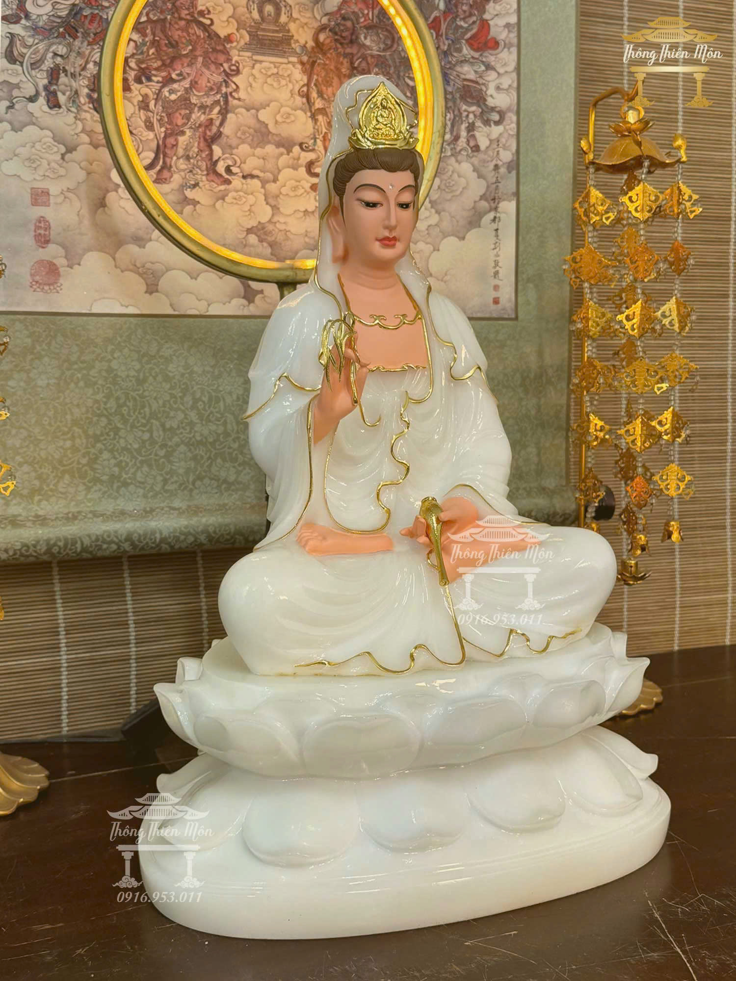 Tôn tượng Quan Âm Bồ Tát, Bột Bạch Ngọc, Kích thước 45cm