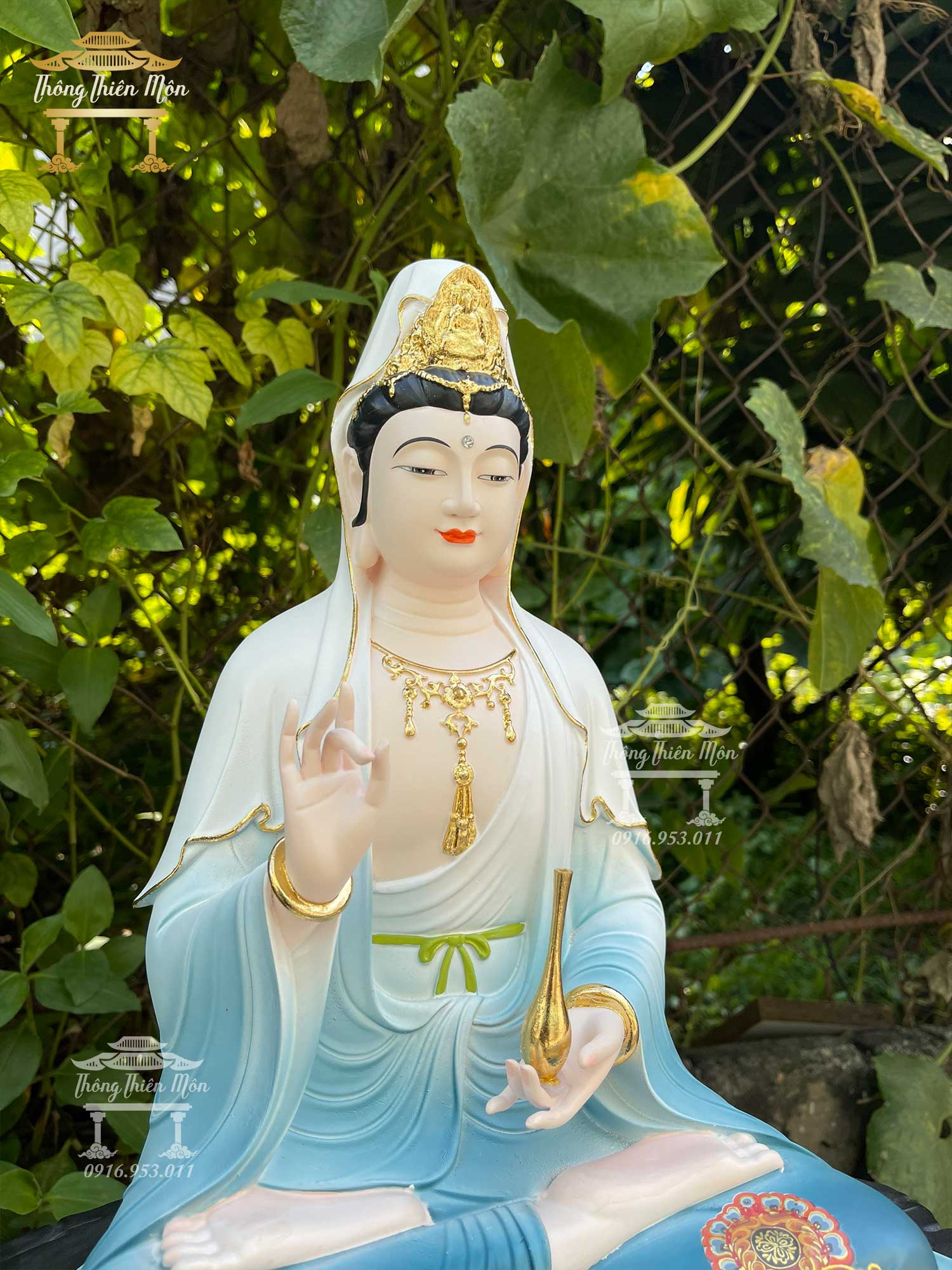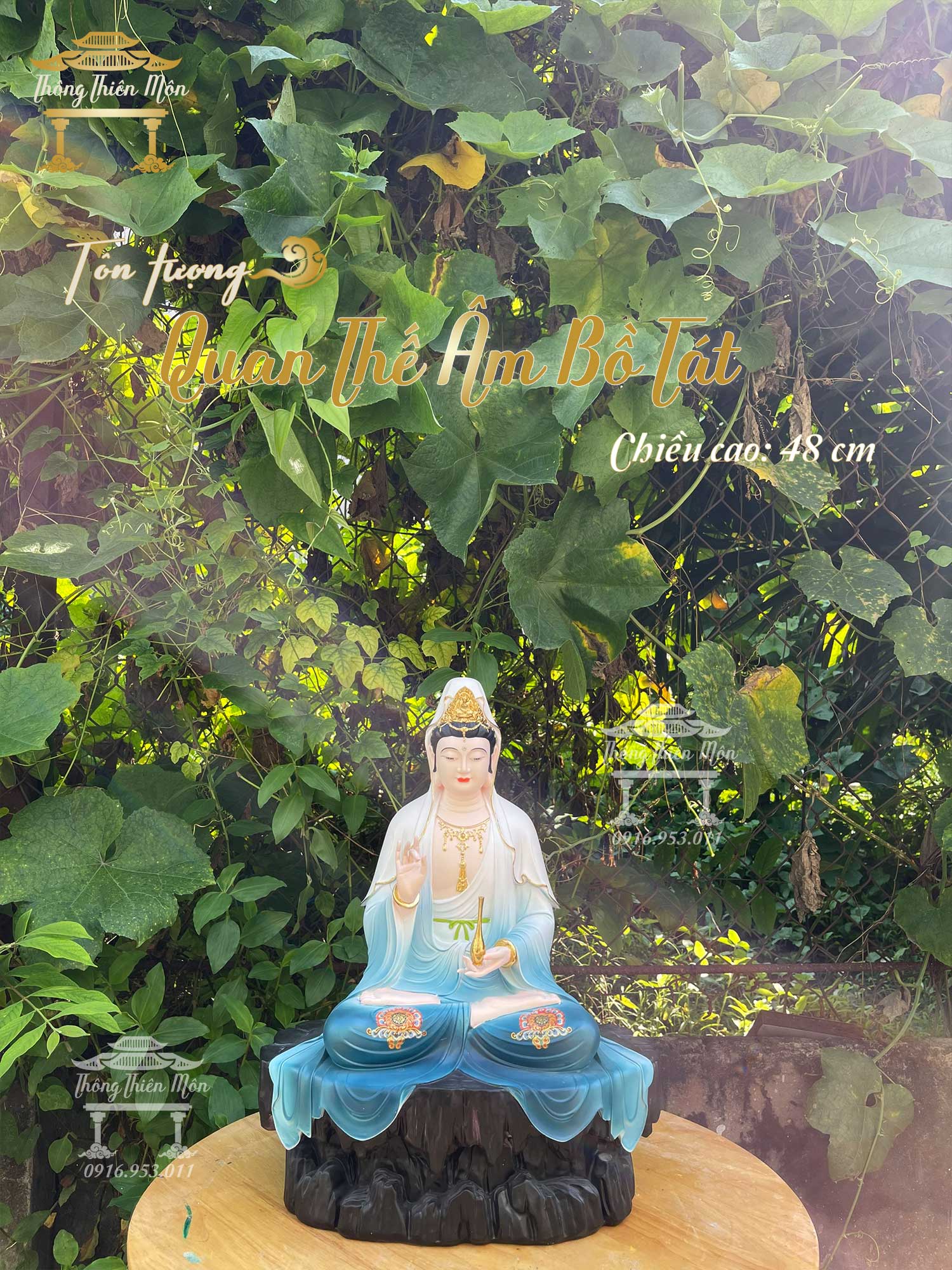 Tôn tượng Quan Thế Âm Bồ Tát - 48cm - Viền vàng, vẽ gấm