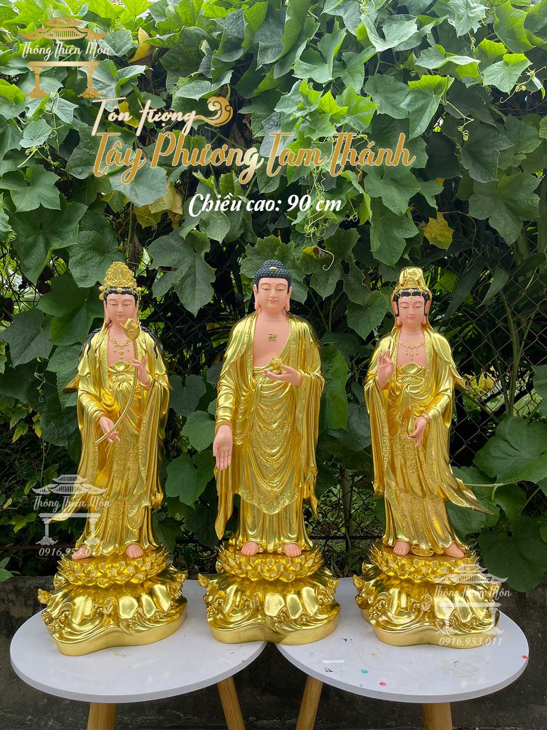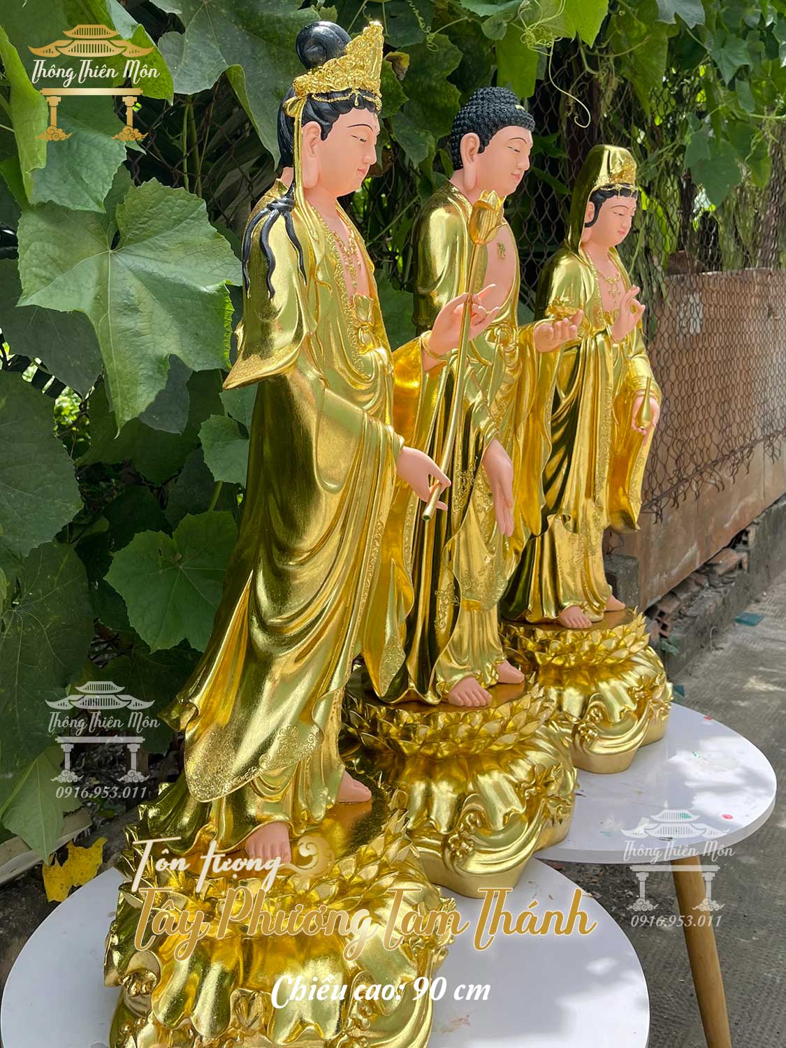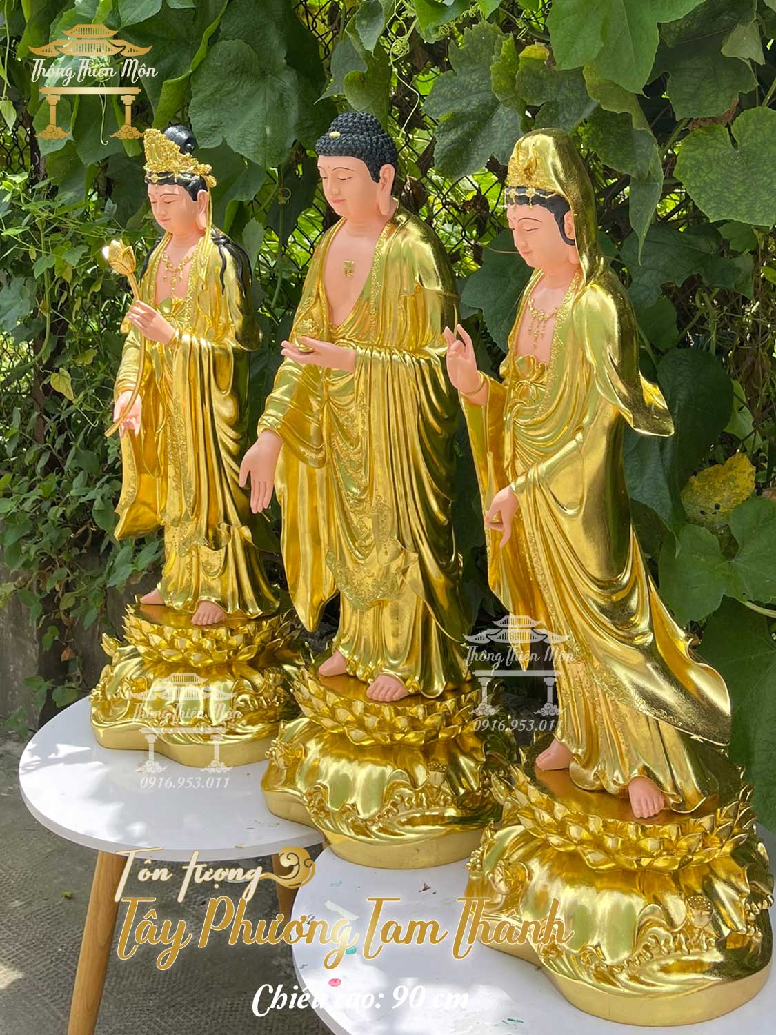 Tôn tượng Tây Phương Tam Thánh - Cao 90cm - Mạ vàng