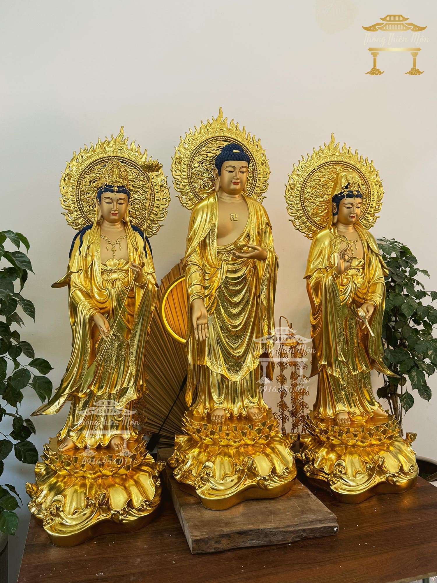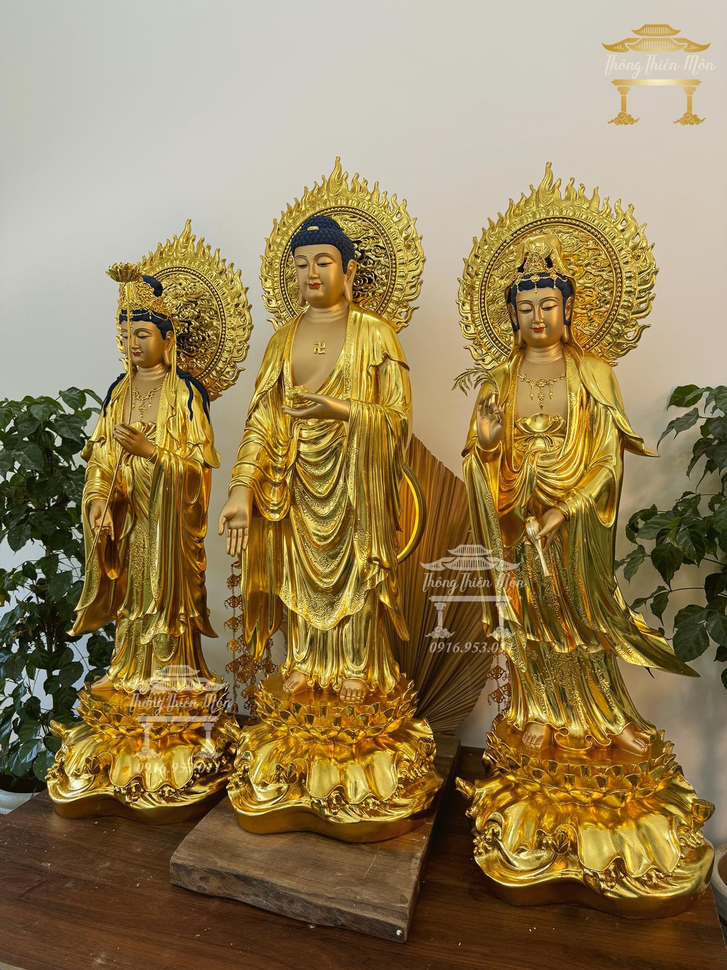Tôn tượng Tây Phương Tam Thánh - Kích thước 100cm - Có hào quang