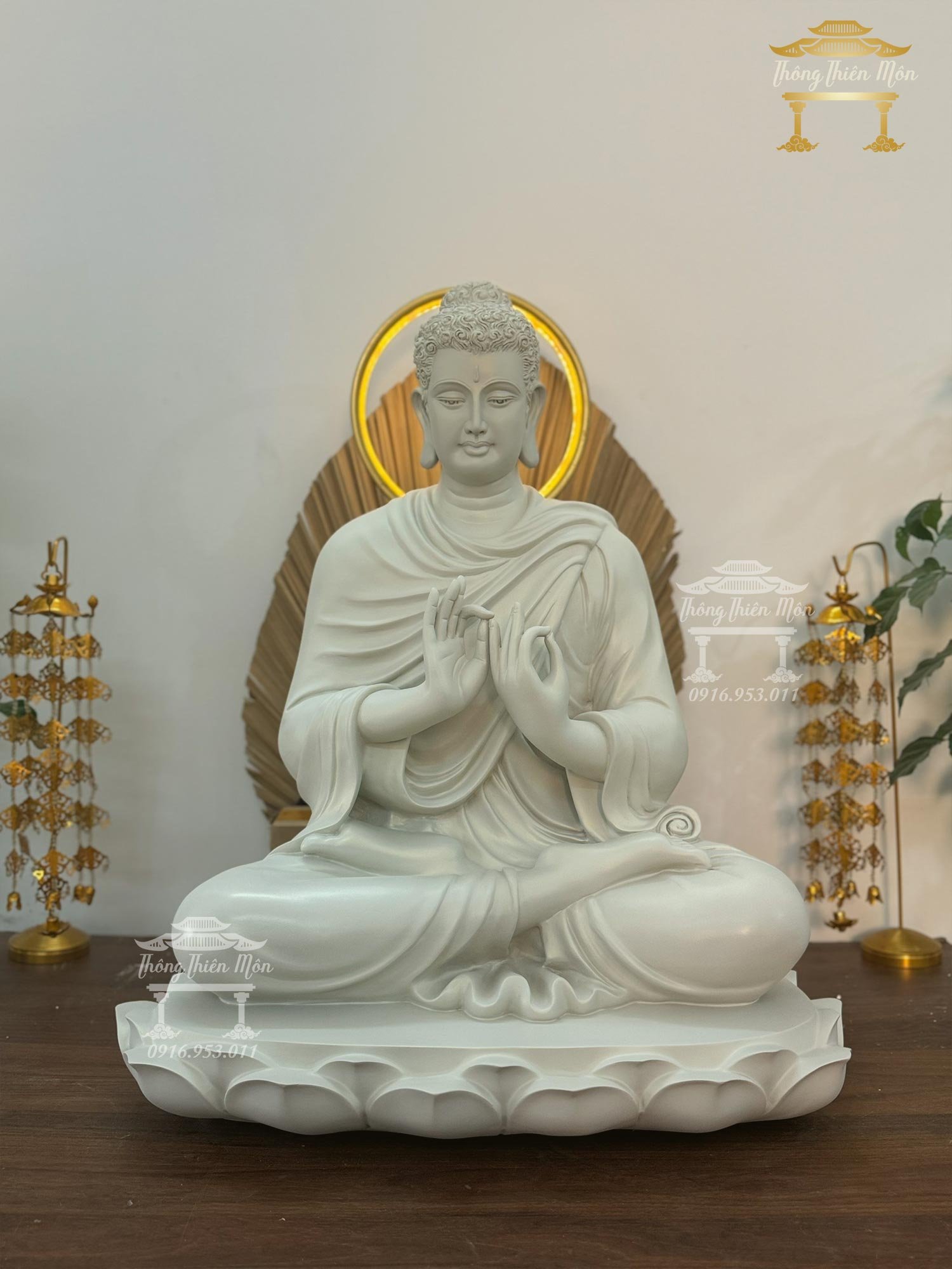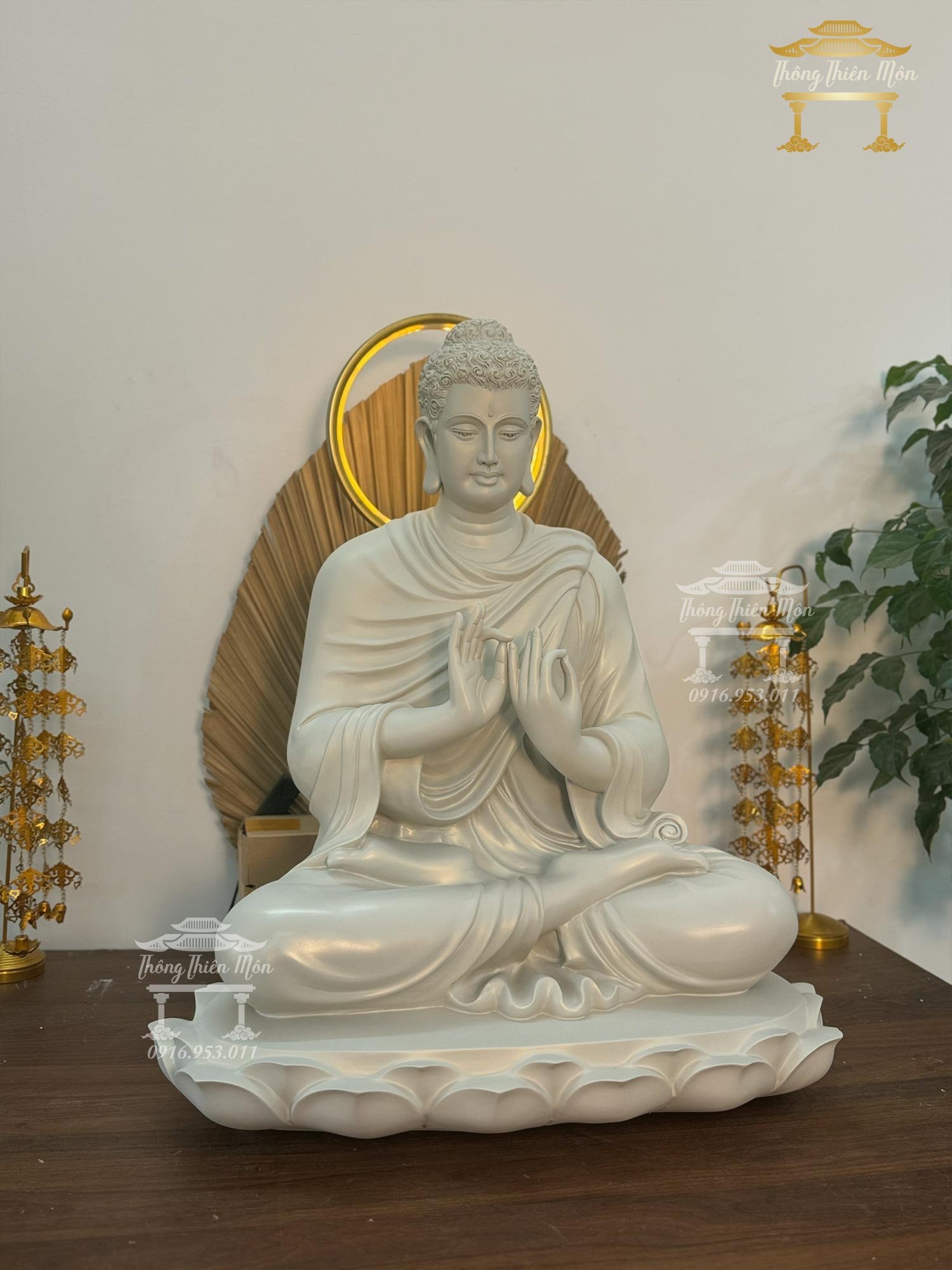 Tôn tượng Thích Ca Chuyển Pháp Luân - 70cm - Đế sen 1 tầng, sơn 1 màu
