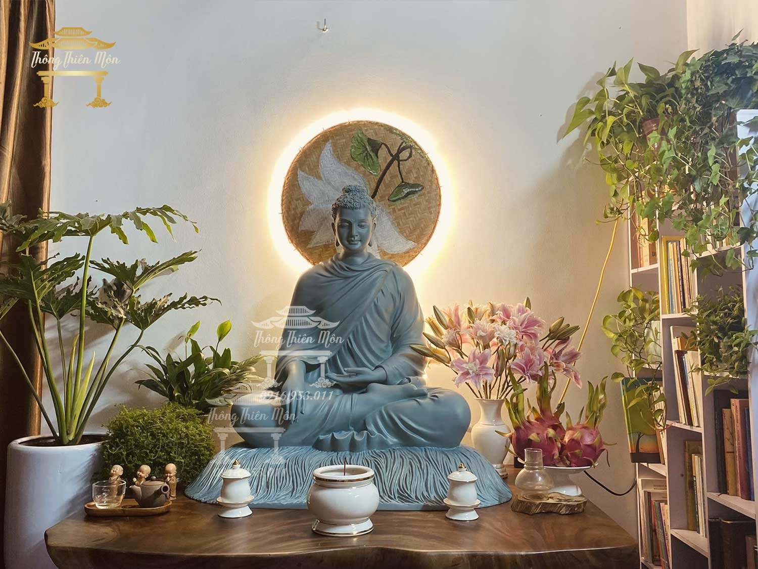 Tượng Bổn Sư Thích Ca Ấn Địa Xúc - 85cm - Màu xám xanh