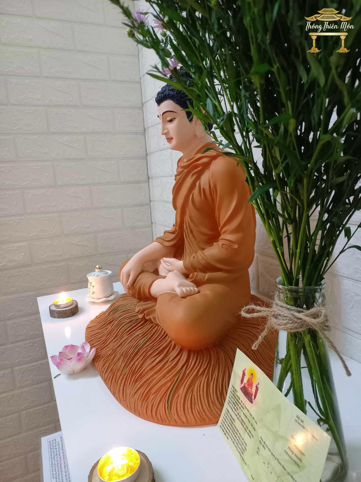 • Tôn Tượng Ngồi đế cỏ, sơn phối màu lạ mắc