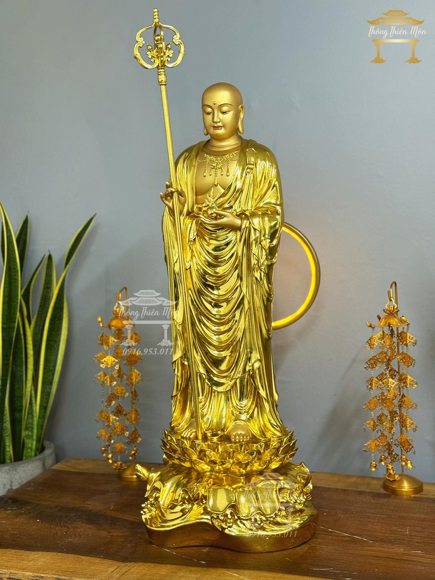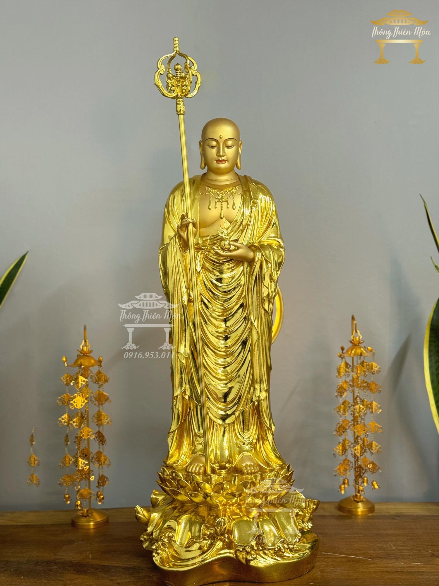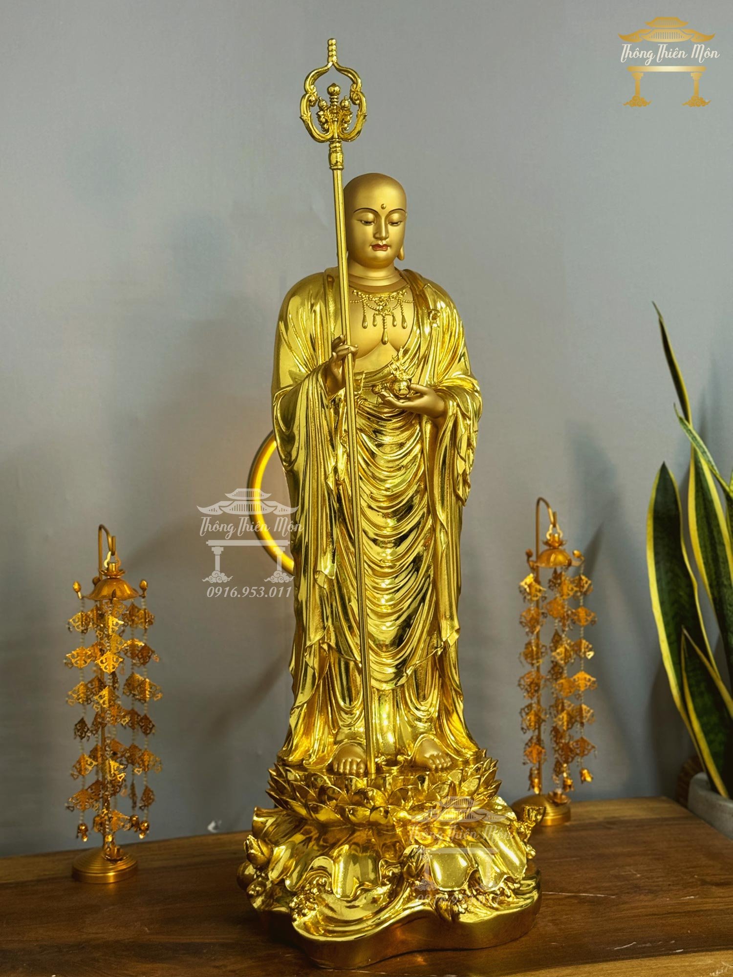 Tượng Địa Tạng Bồ Tát, Mạ vàng, Kích thước 90cm