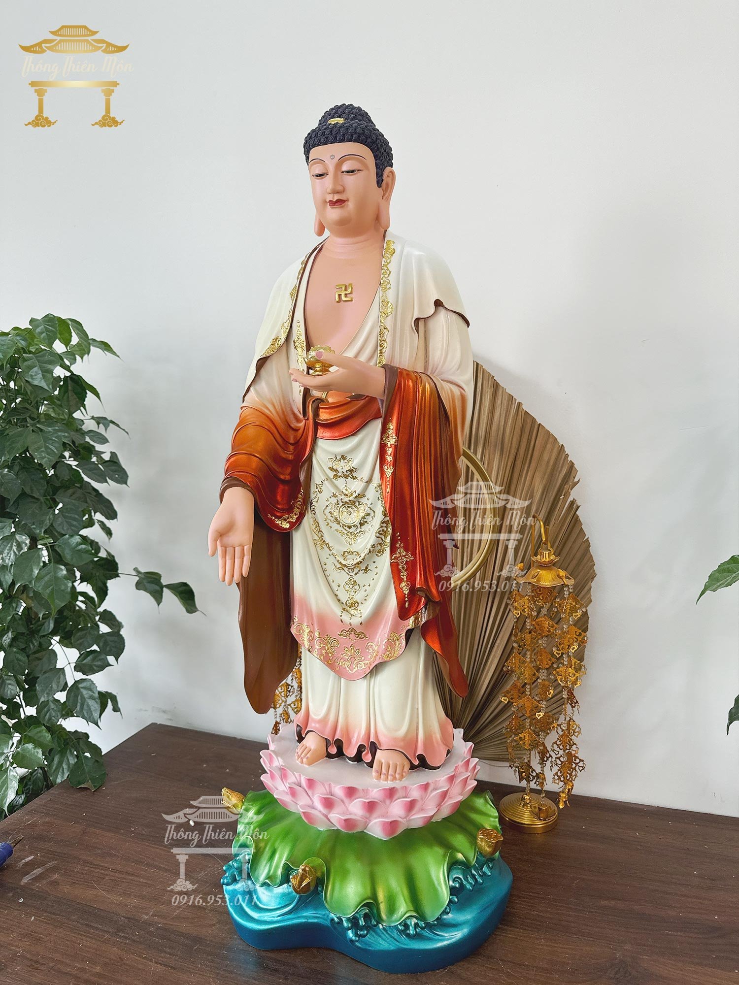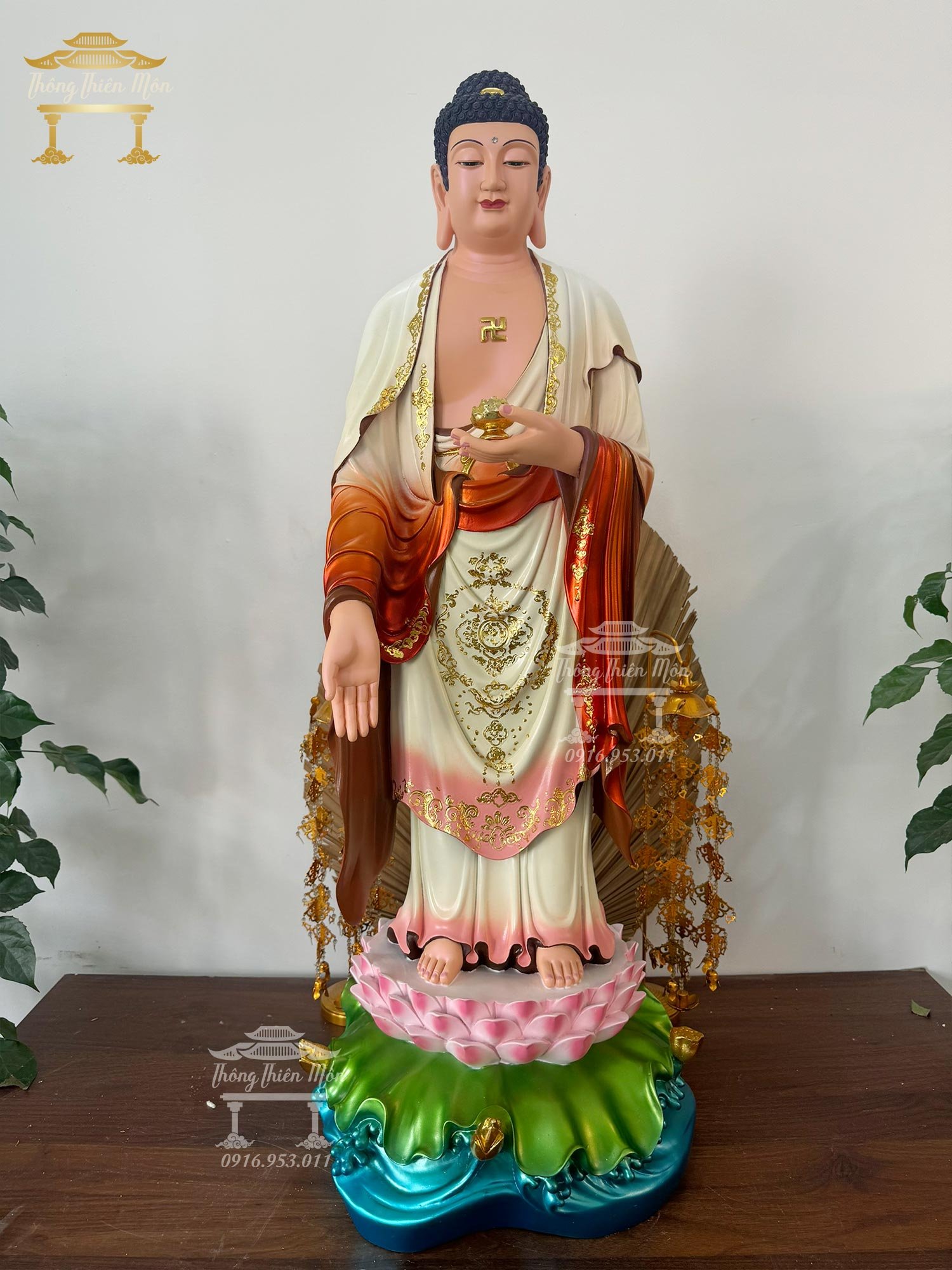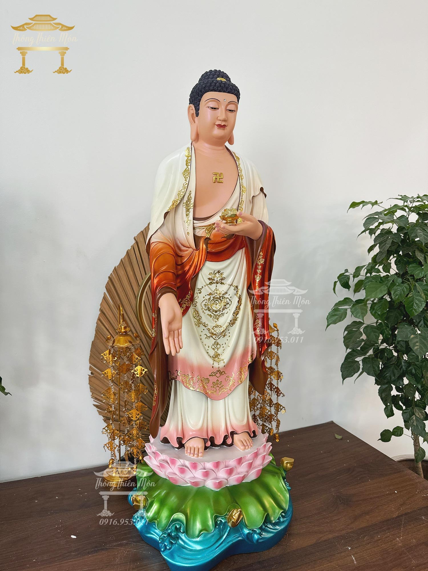 • Tượng Phật A Di Đà dáng đứng đài sen, phối màu đỏ