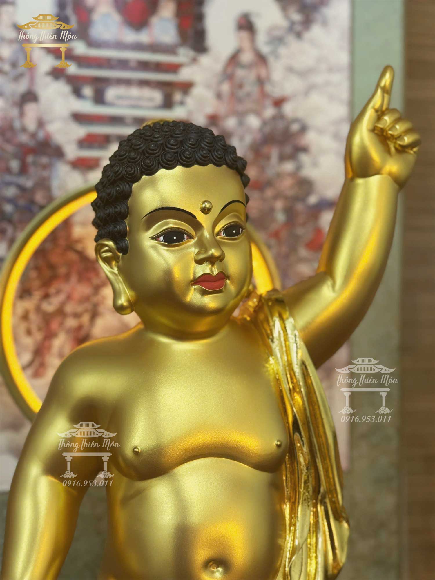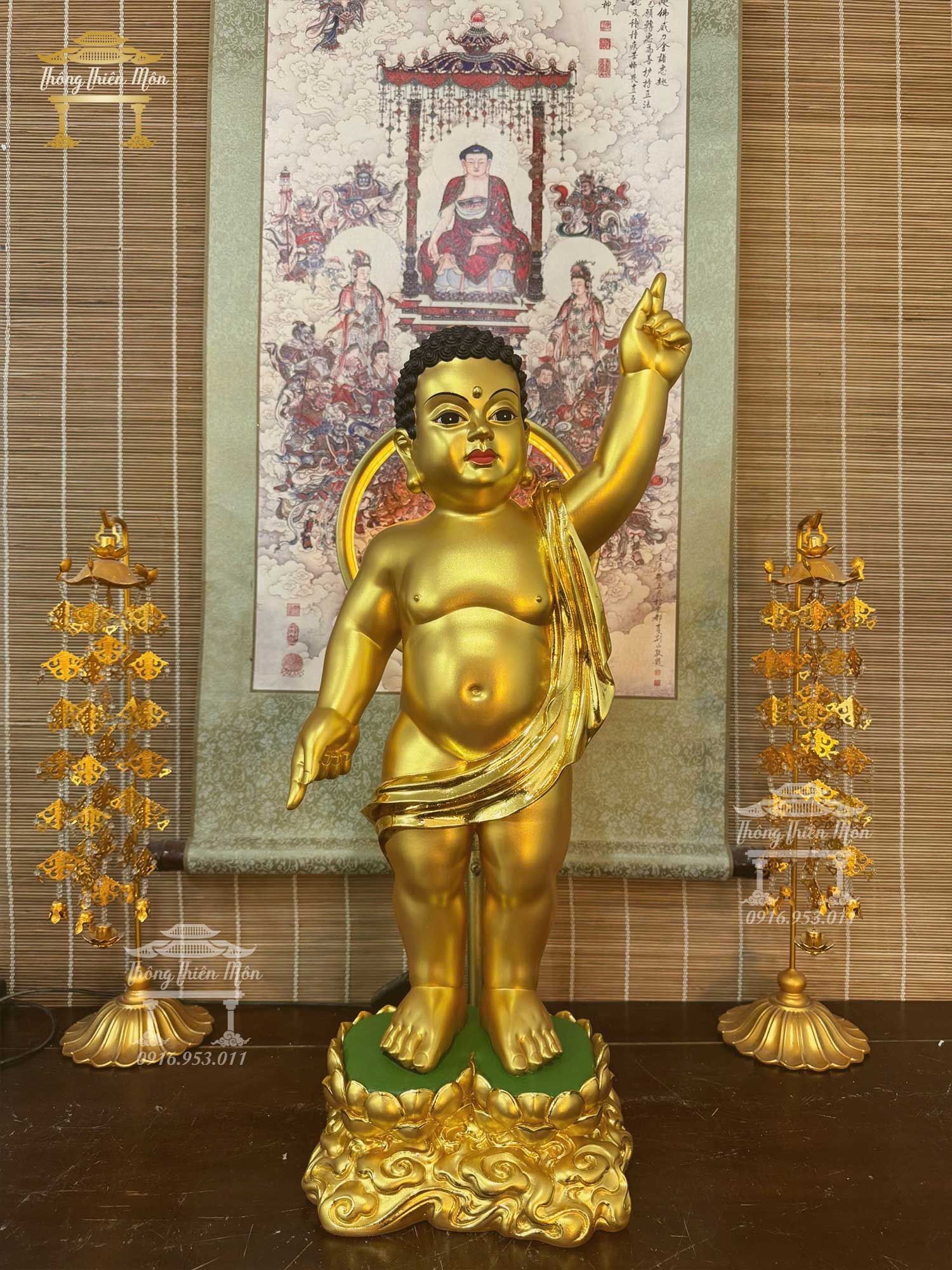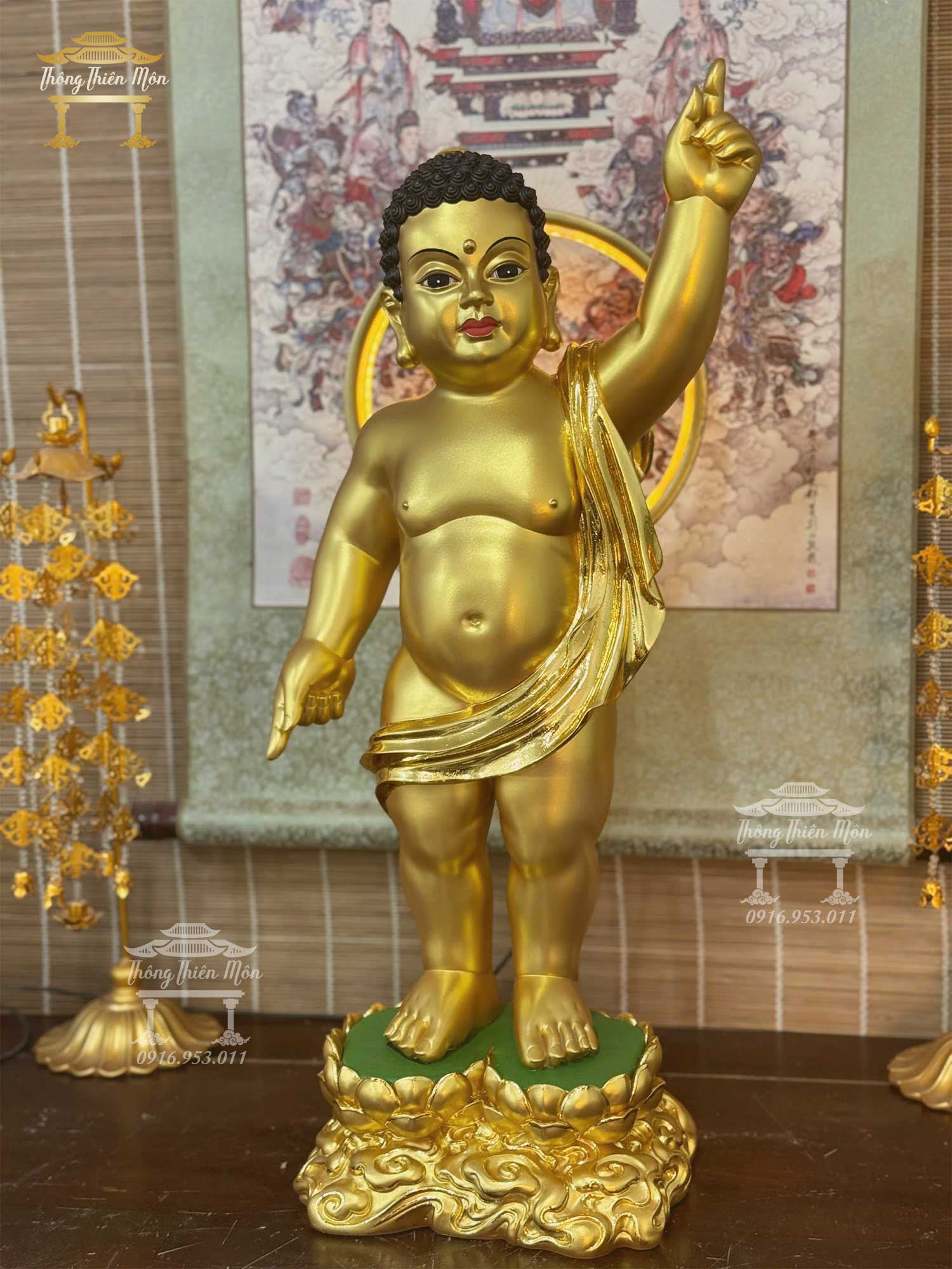 Tượng Phật Đản Sanh - Sơ Sinh, Kích thước 60cm, Mạ vàng