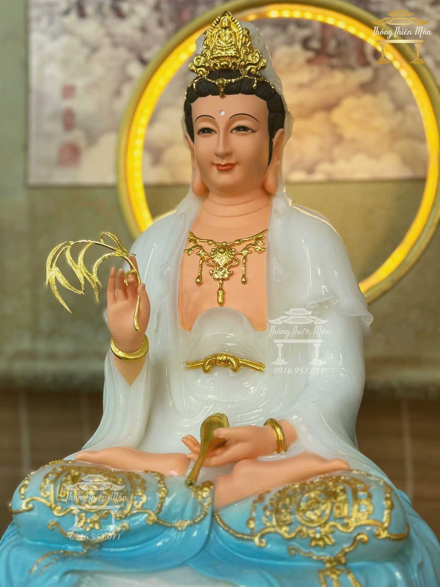 • Tôn tượng dáng ngồi đài sen, thể hiện sự thanh tịnh, tĩnh lặng và lòng từ bi của Bồ Tát Quan Âm