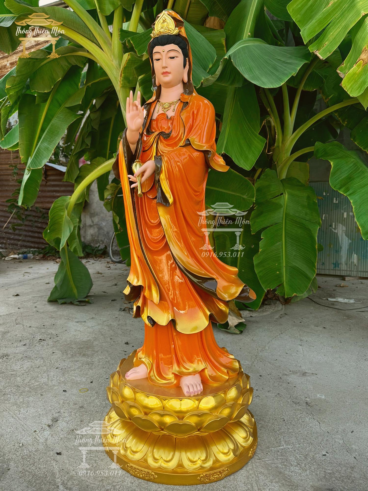 Tượng Quan Âm Bồ Tát, Cao 120cm, Sơn khoáng cam