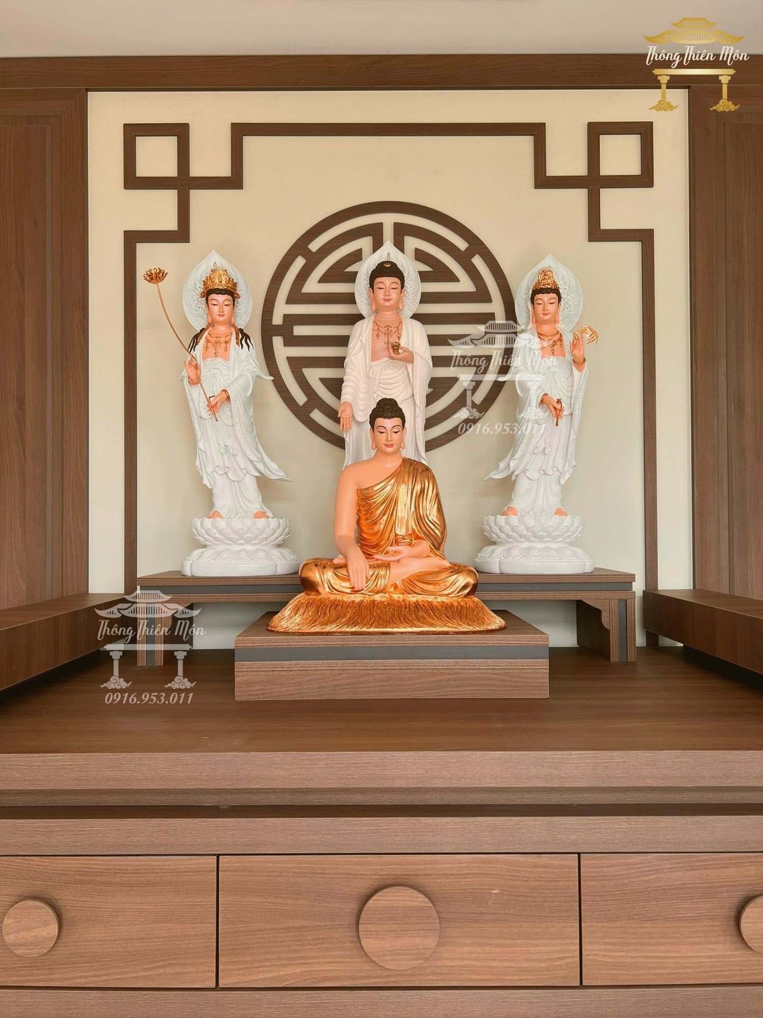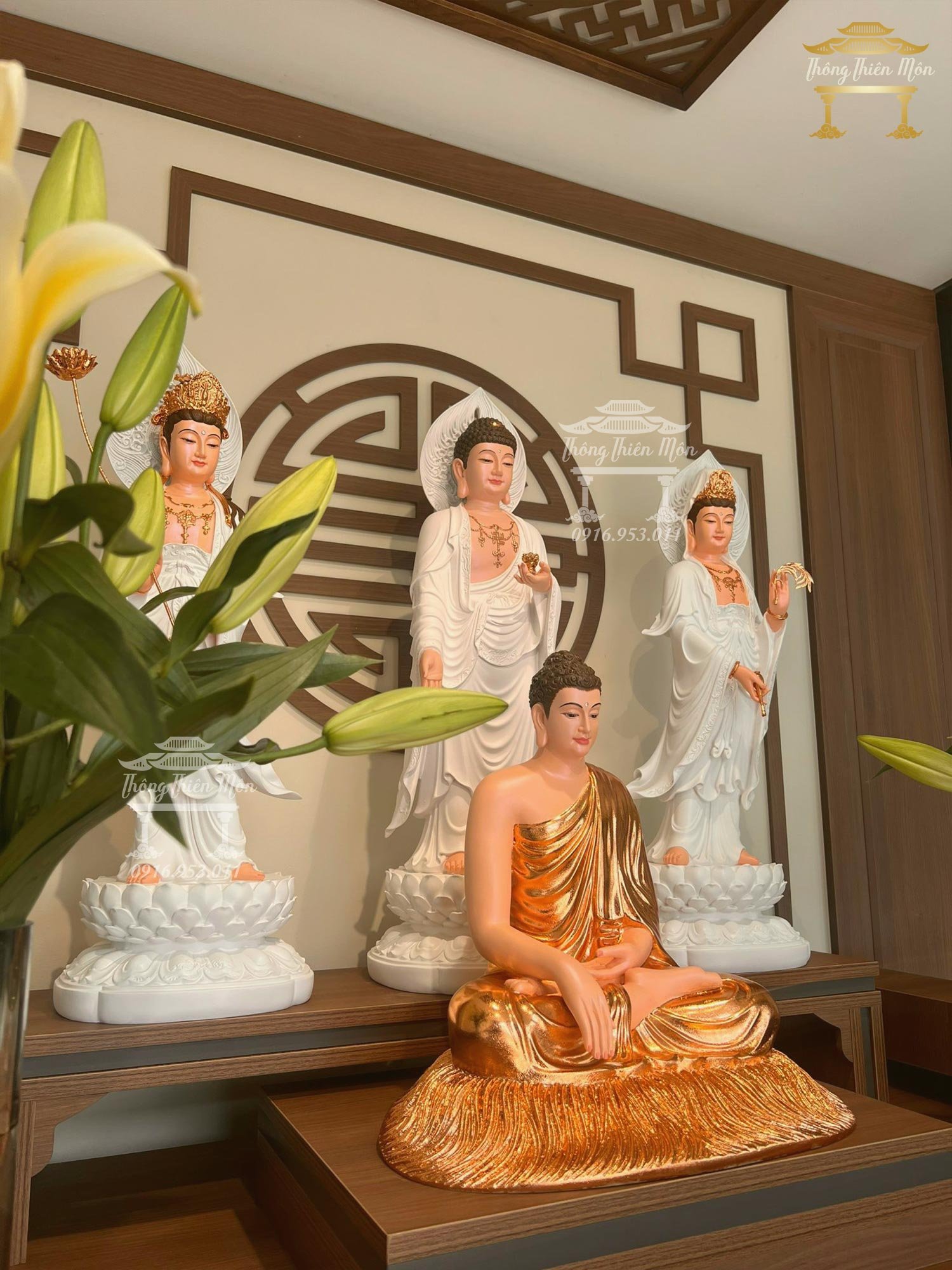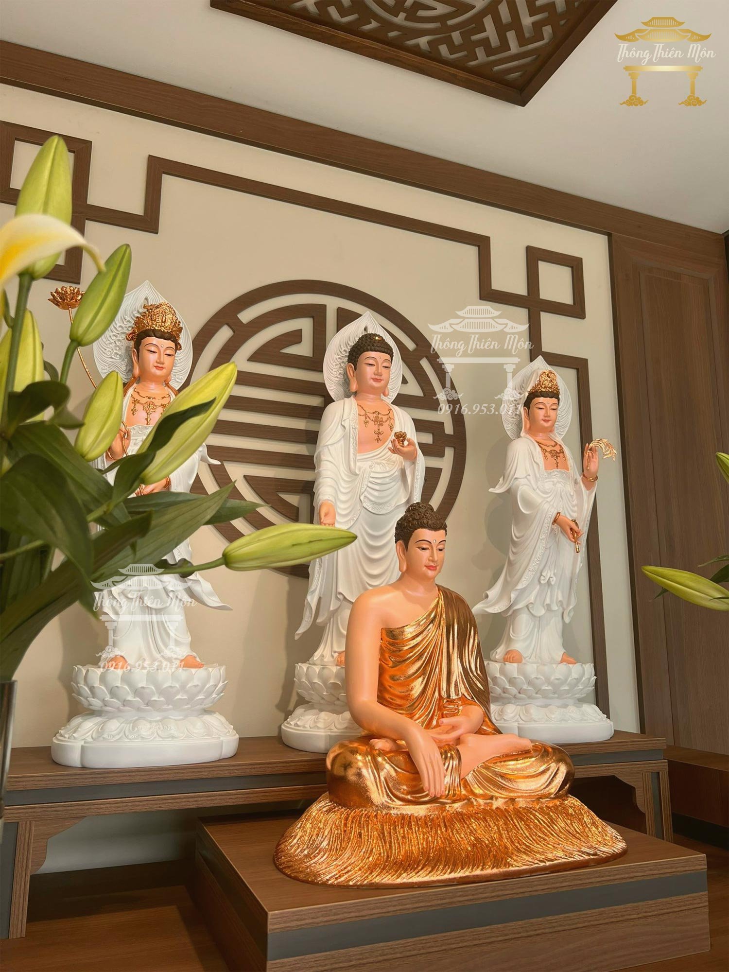 Tượng Tây Phương Tam Thánh, màu trắng, kích thước 70cm