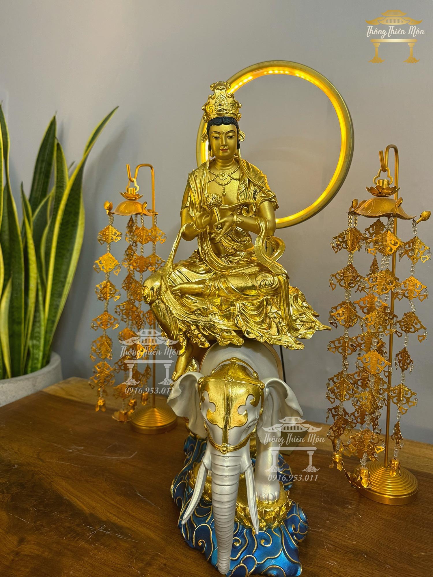 Tượng Văn Thù - Phổ Hiền Bồ Tát, Kích thước 50cm, Sơn phối màu kết hợp mạ vàng