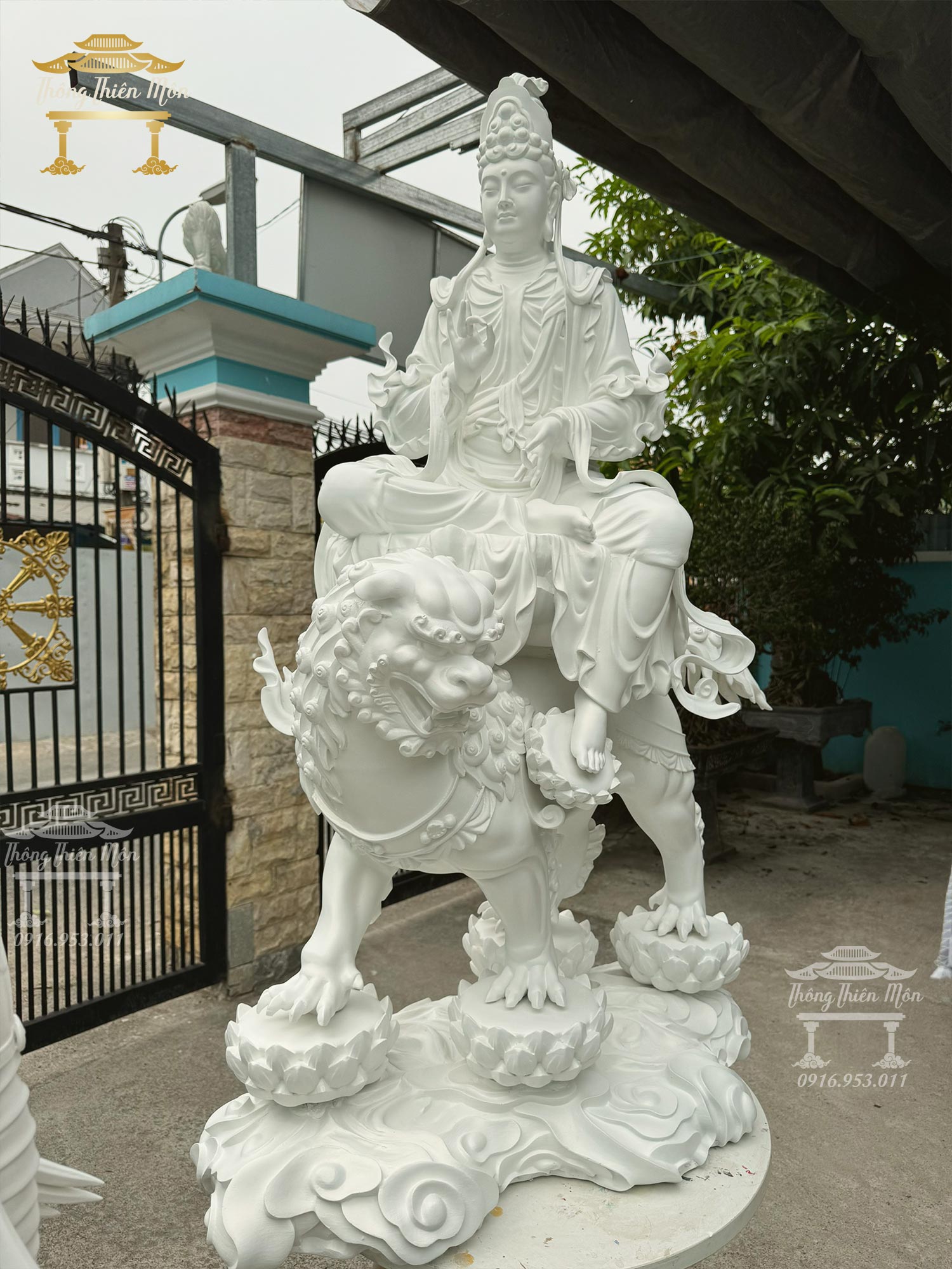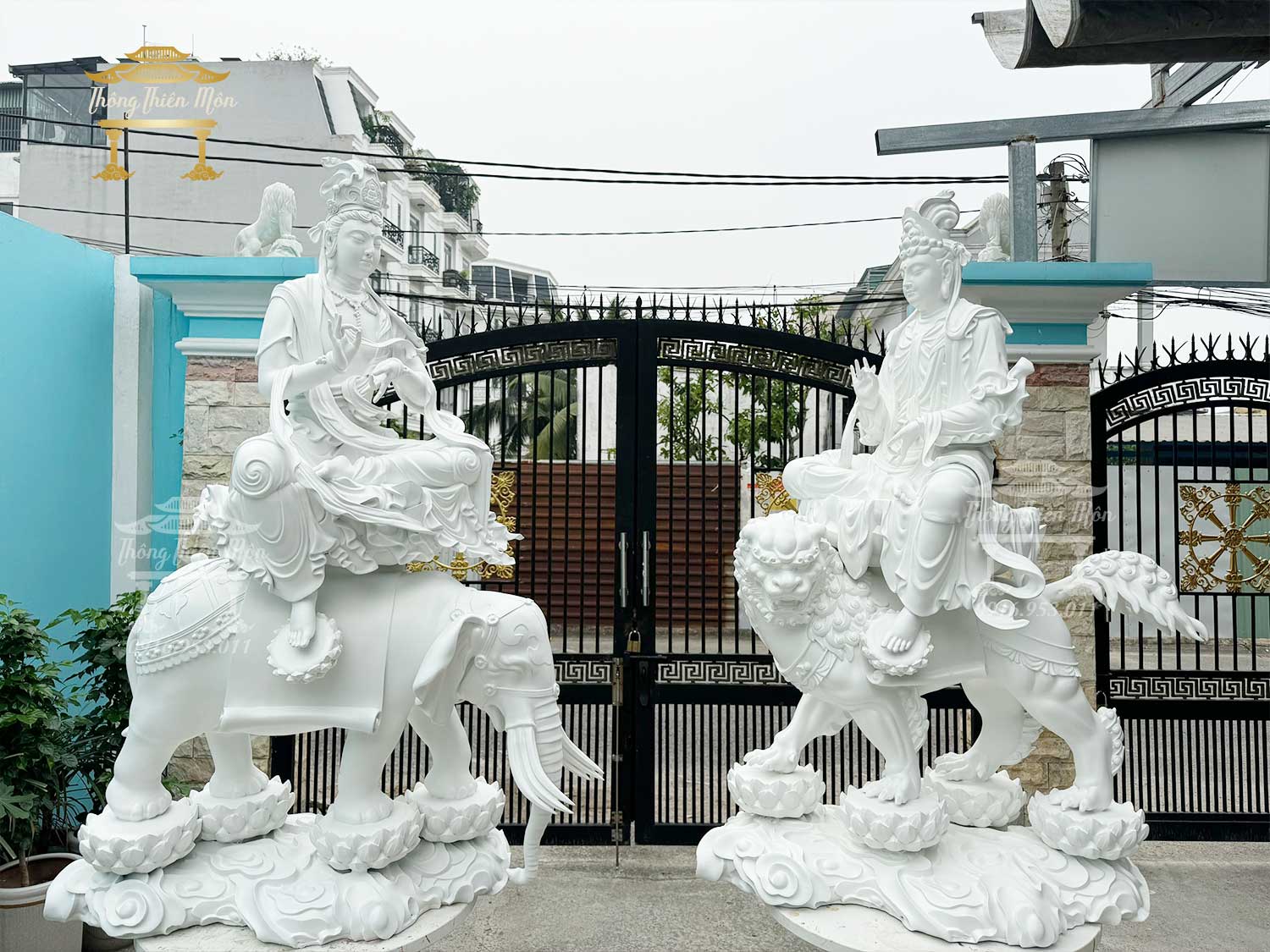 Tượng Văn Thù - Phổ Hiền Bồ Tát, Màu trắng ngọc trai, kích thước 140cm