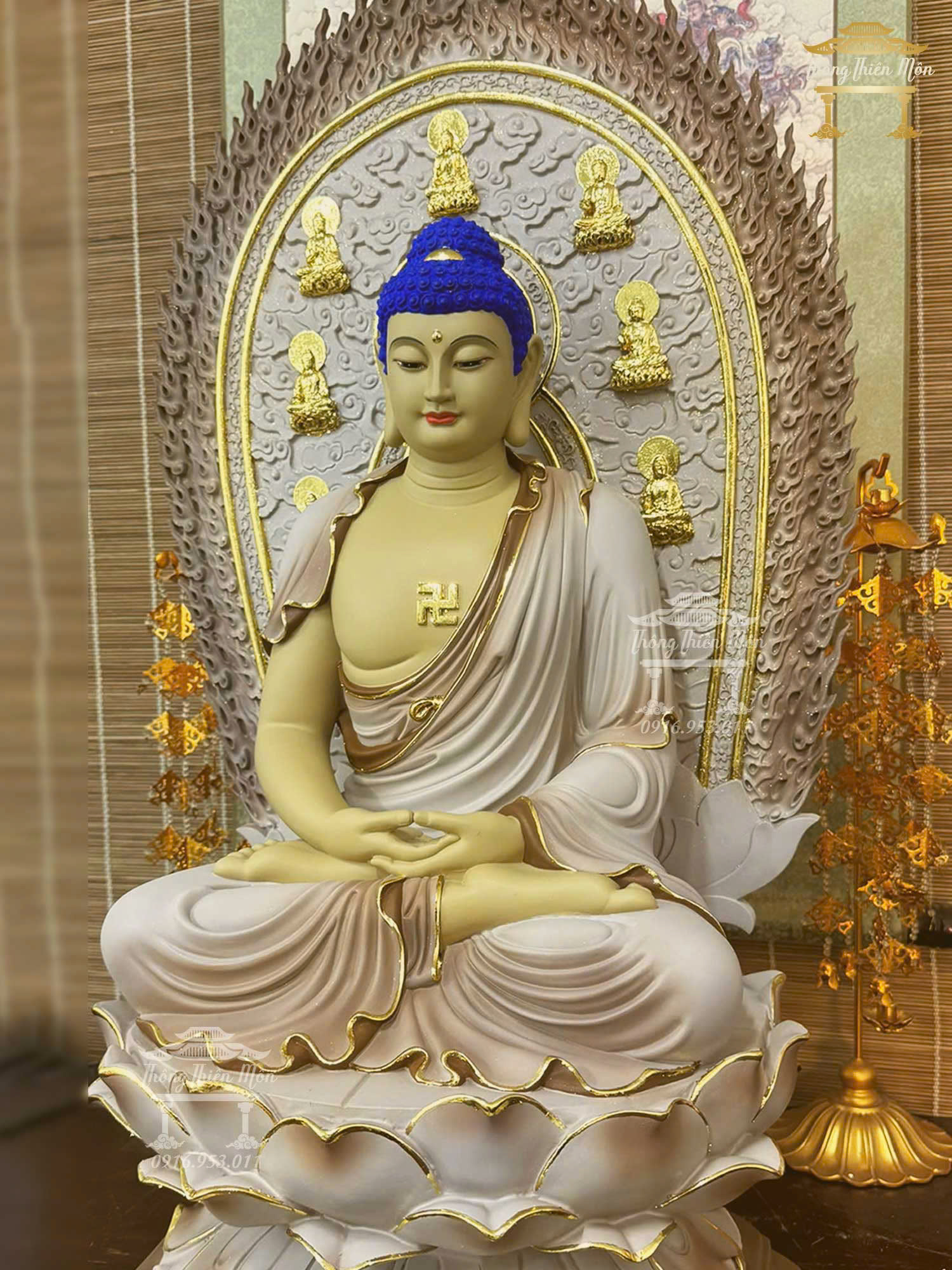 • Tôn Tượng Ngồi đế sen, sơn khoáng viền vàng