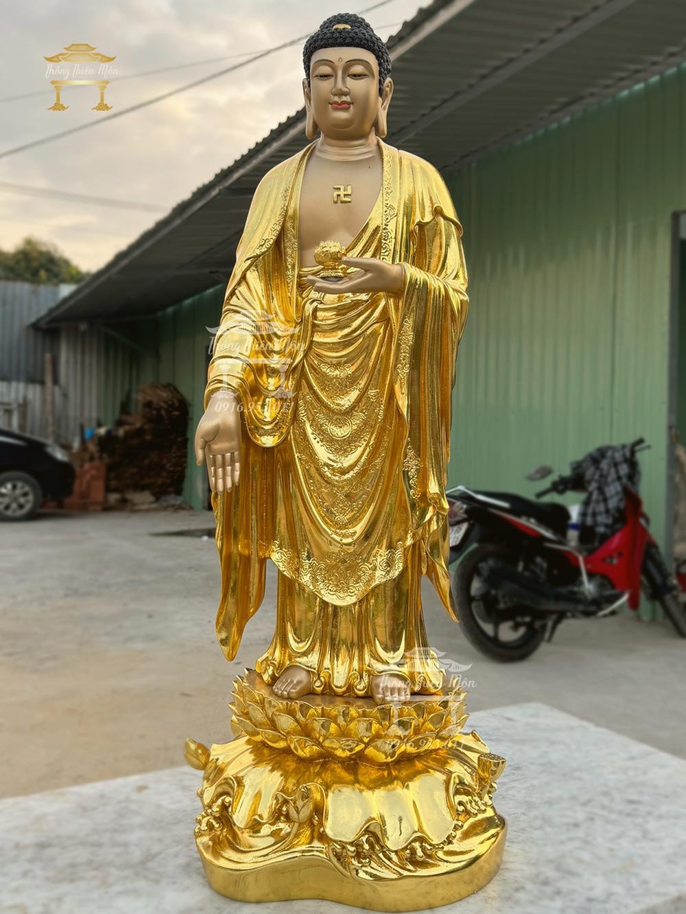 Tôn tượng A Di Đà - 90cm - Mạ vàng, da giả đồng