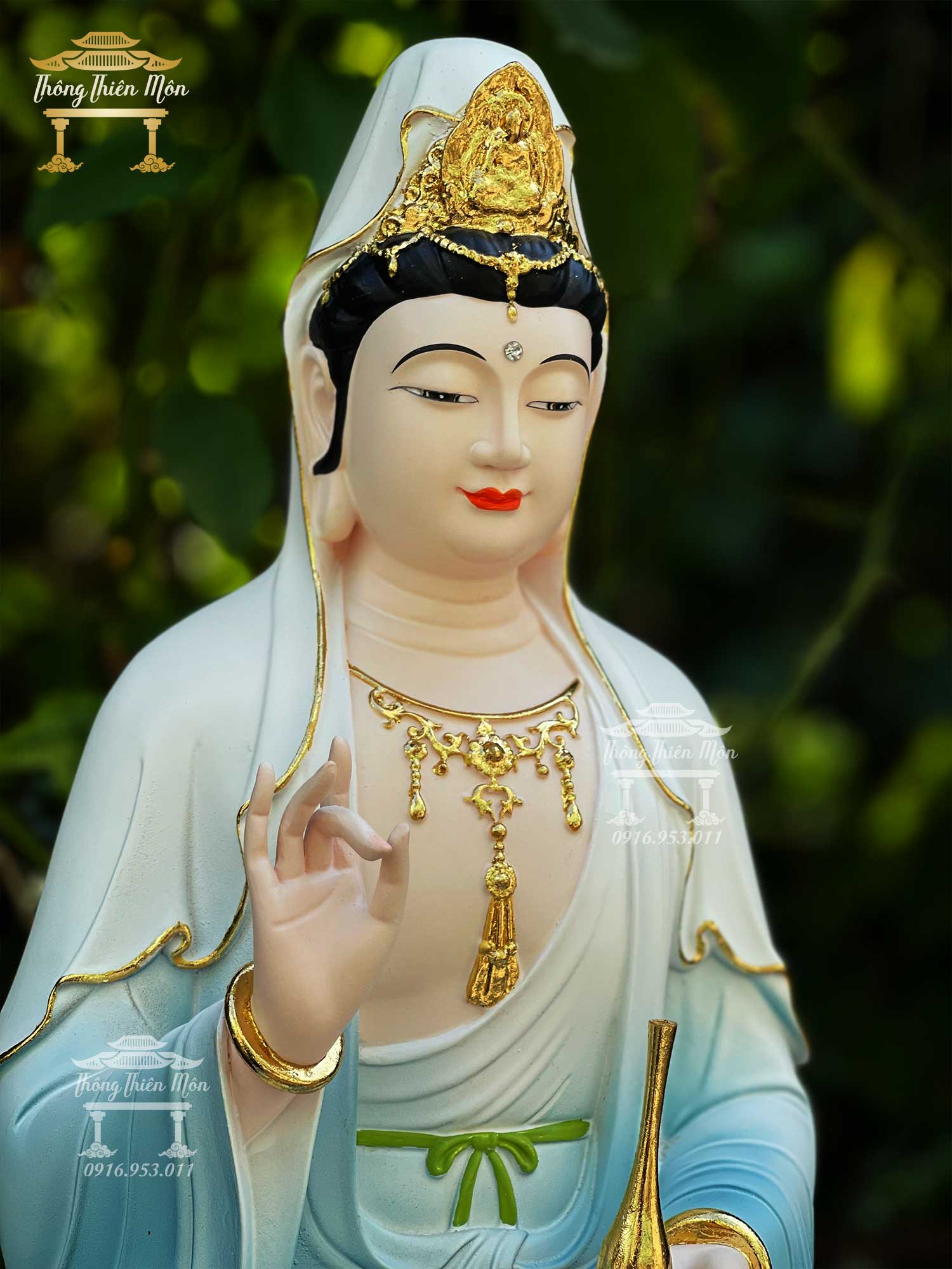 Tôn tượng Quan Thế Âm Bồ Tát - 48cm - Viền vàng, vẽ gấm