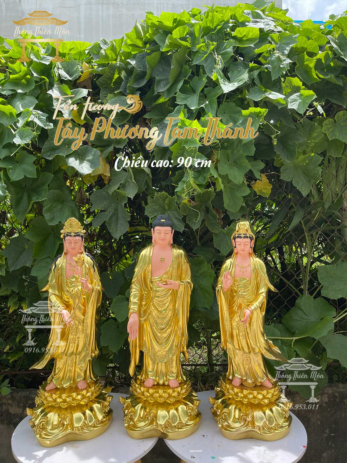 Tôn tượng Tây Phương Tam Thánh - Cao 90cm - Mạ vàng
