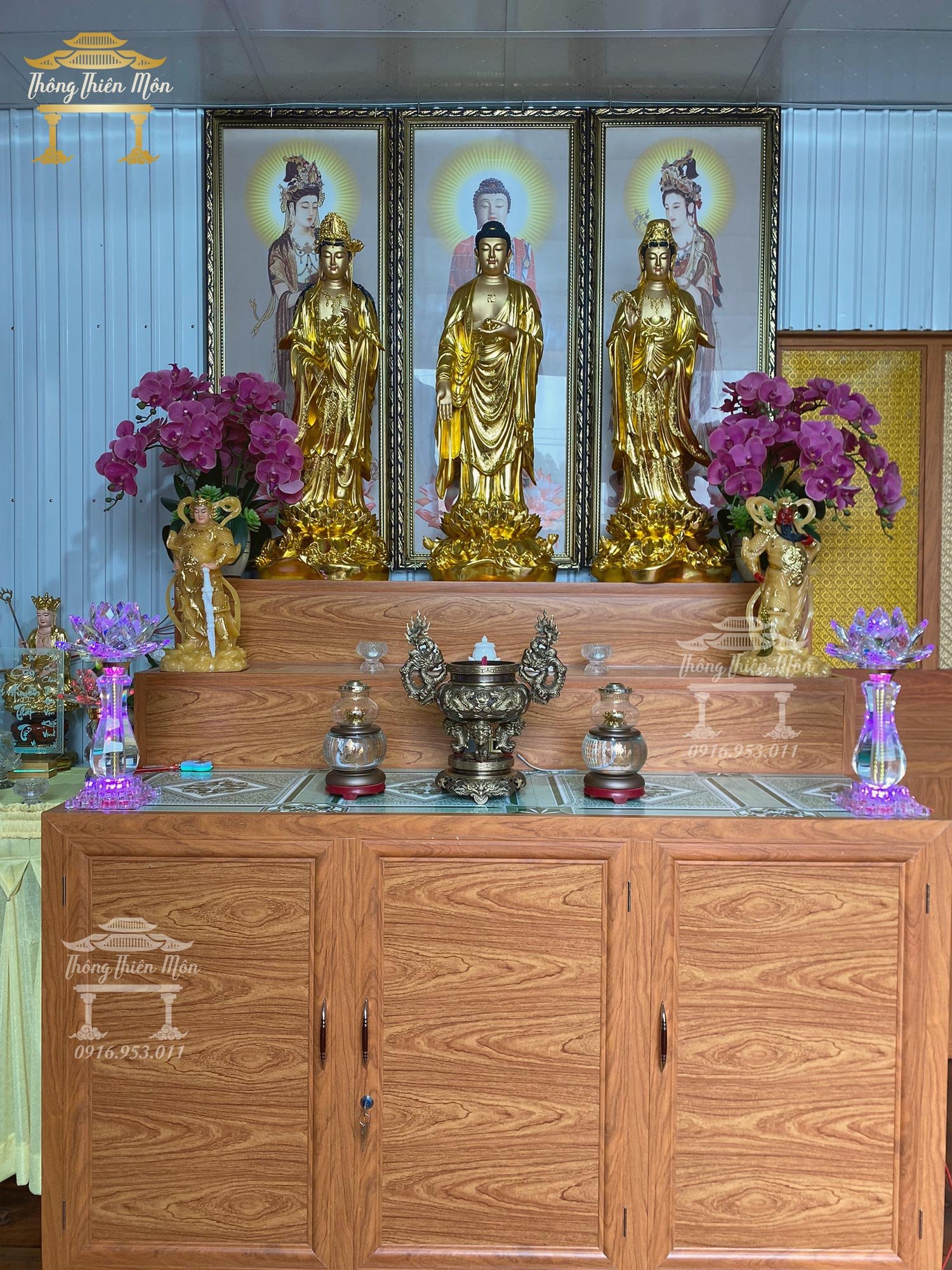 • Bộ Tượng Tây Phương Tam Thánh đứng đài sen, dát vàng
