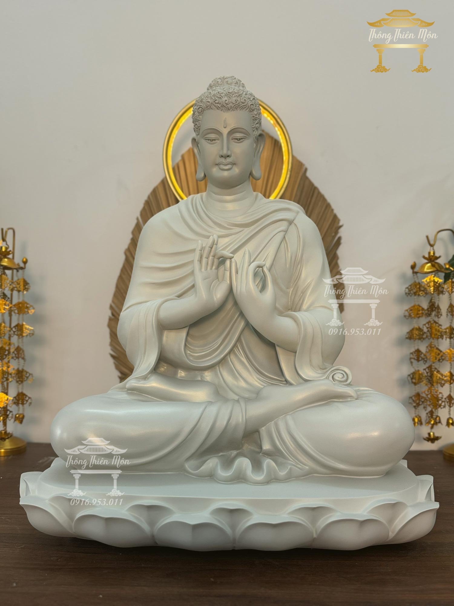 Tôn tượng Thích Ca Chuyển Pháp Luân - 70cm - Đế sen 1 tầng, sơn 1 màu