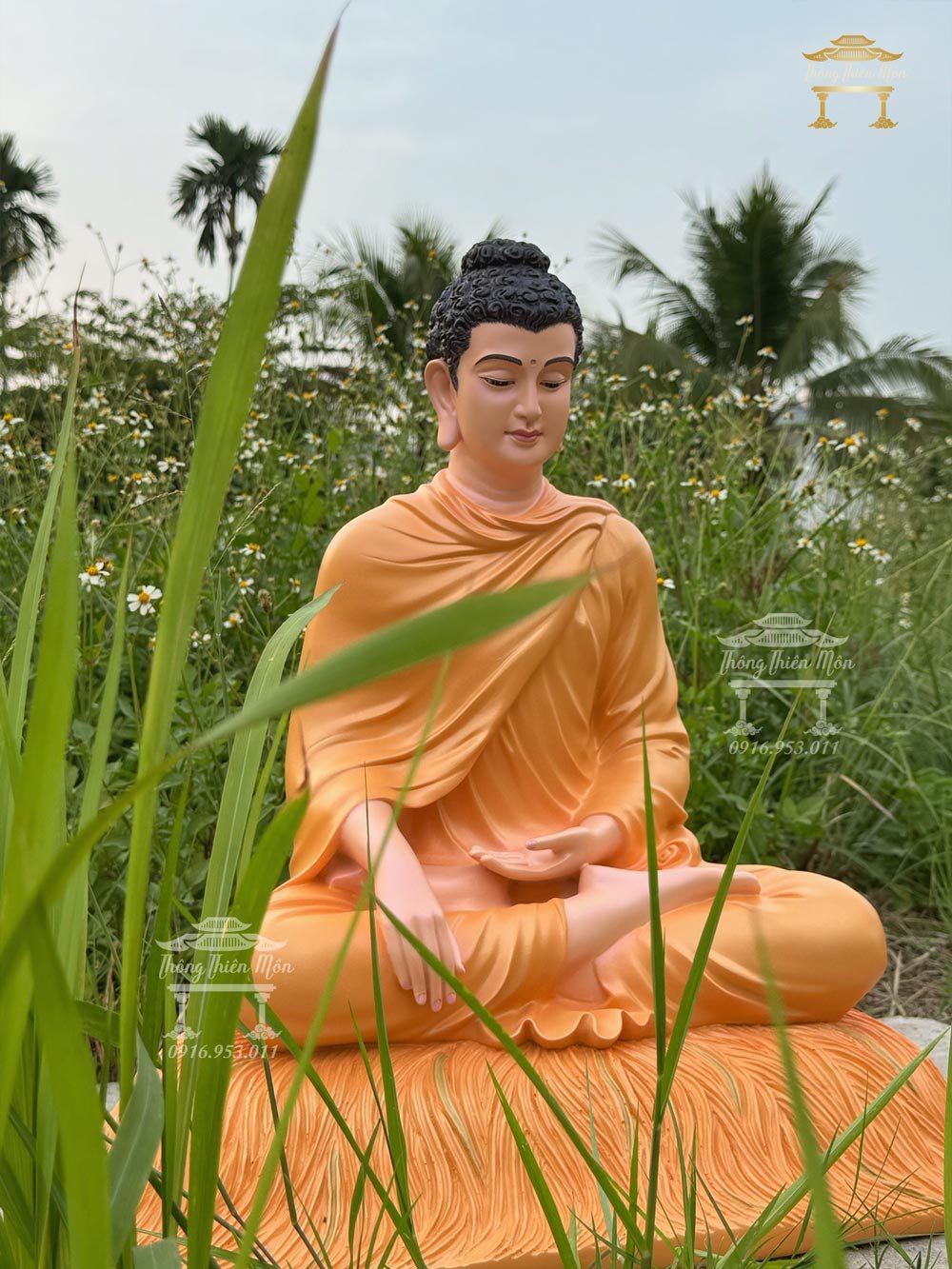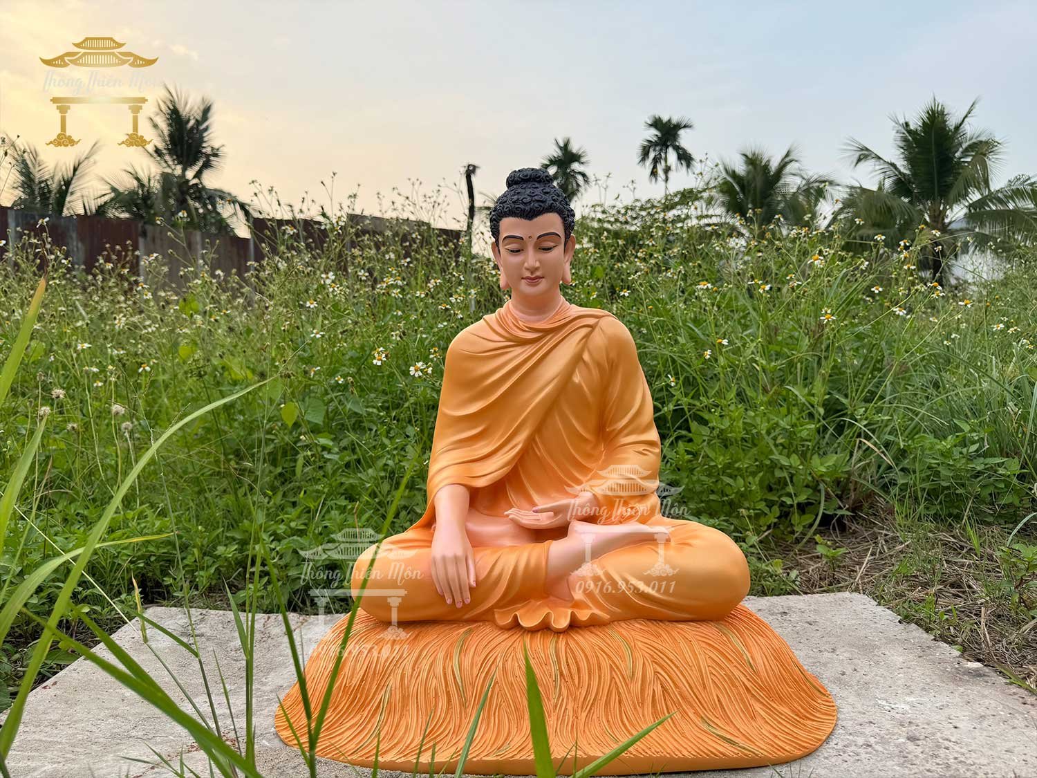 Tượng Bổn Sư Thích Ca Ấn Địa Xúc - 60cm - Màu cam nhạt