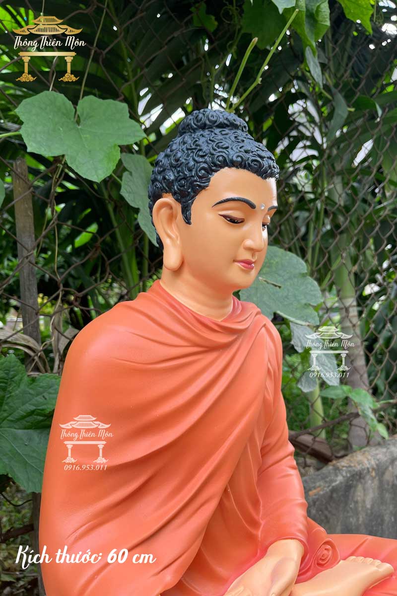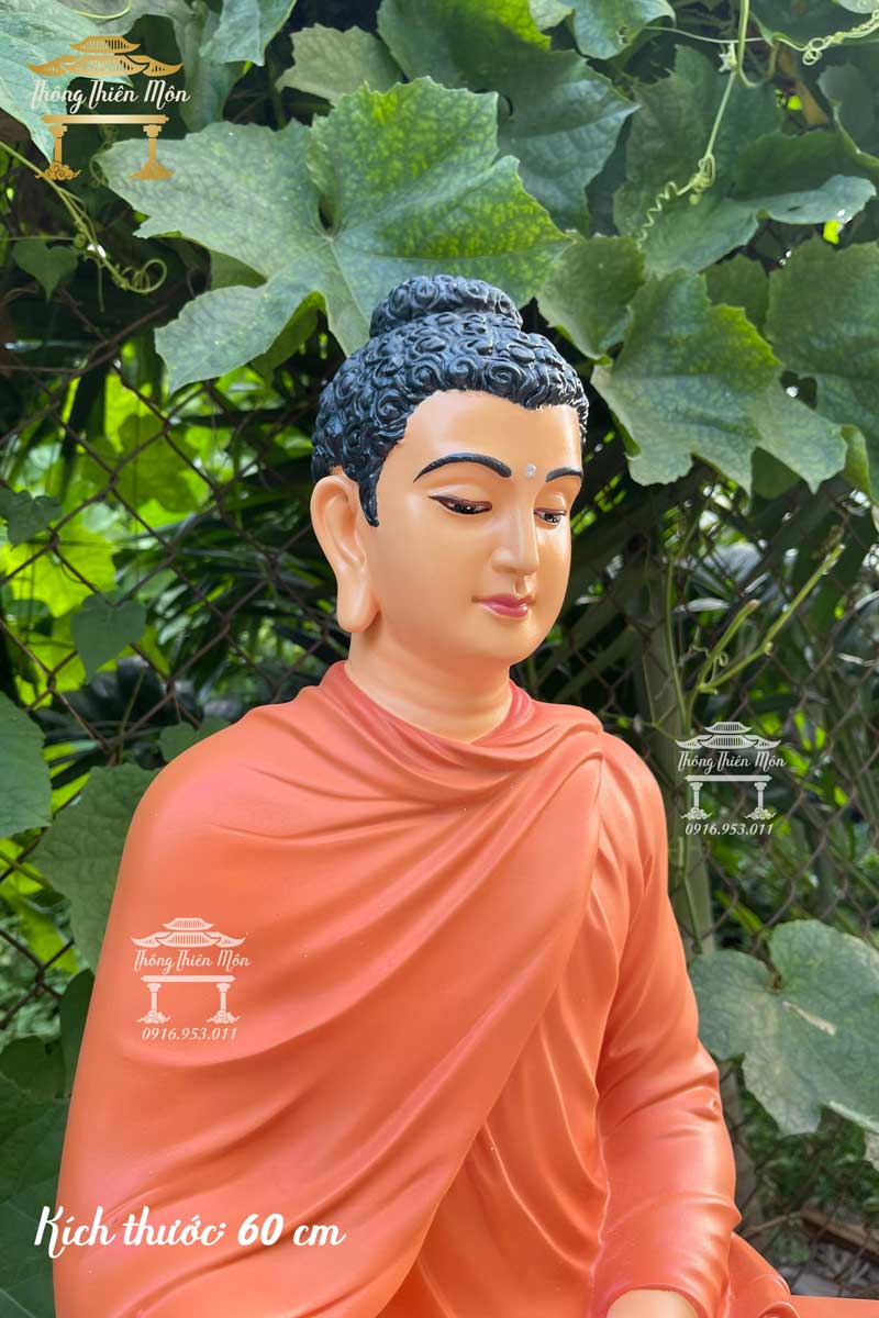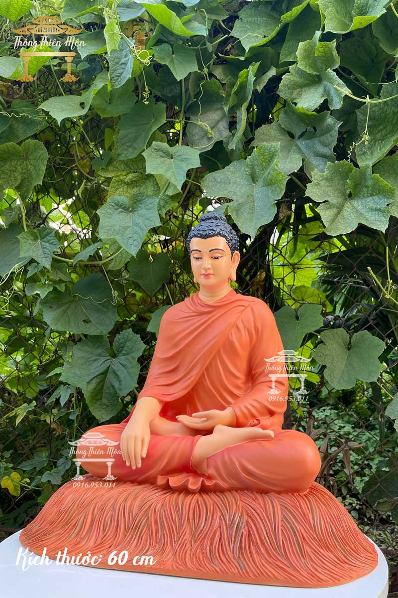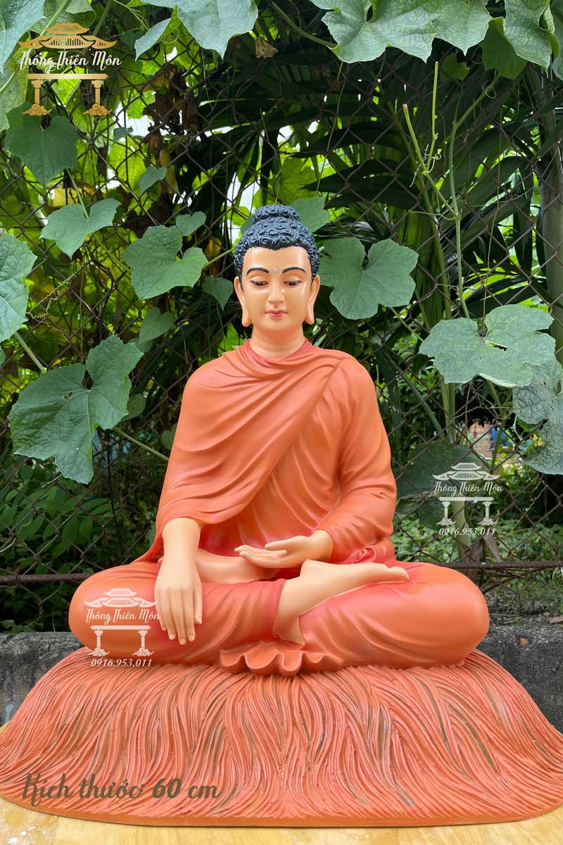 Tượng Bổn Sư Thích Ca Ấn Địa Xúc - Đế cỏ - 60cm - màu cam đất