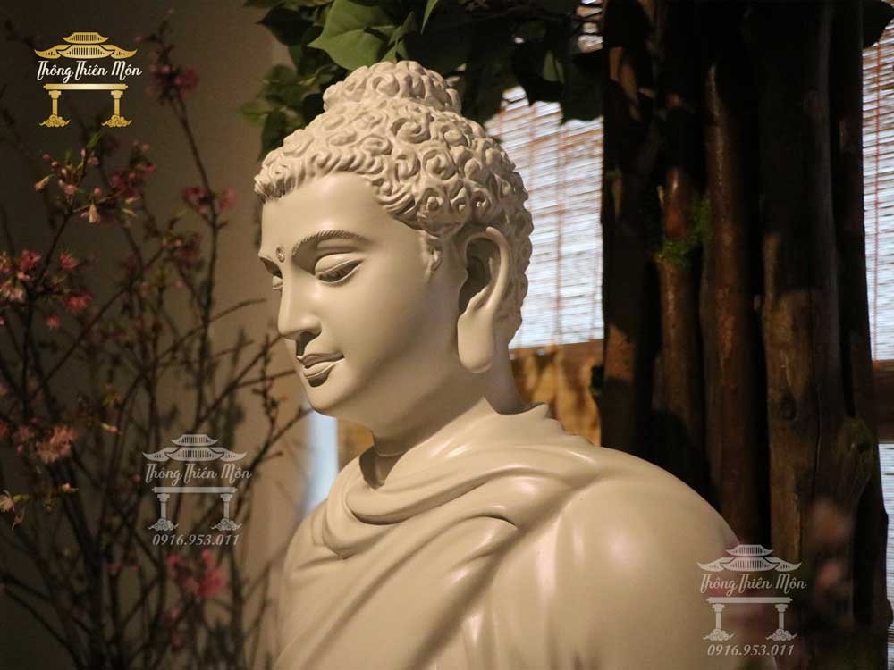 Tượng Bổn Sư Thích Ca Ấn Địa Xúc - Đế cỏ - 85cm - Màu trắng ngọc trai