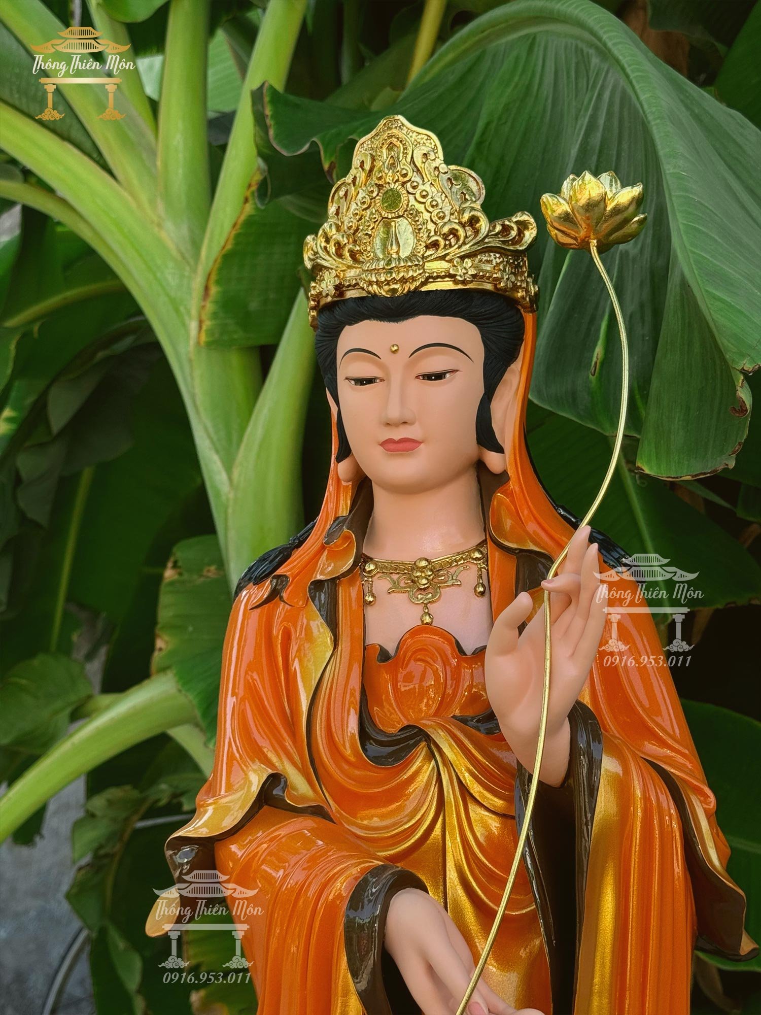 Tượng Đại Thế Chí Bồ Tát, Cao 120cm, Sơn khoáng cam