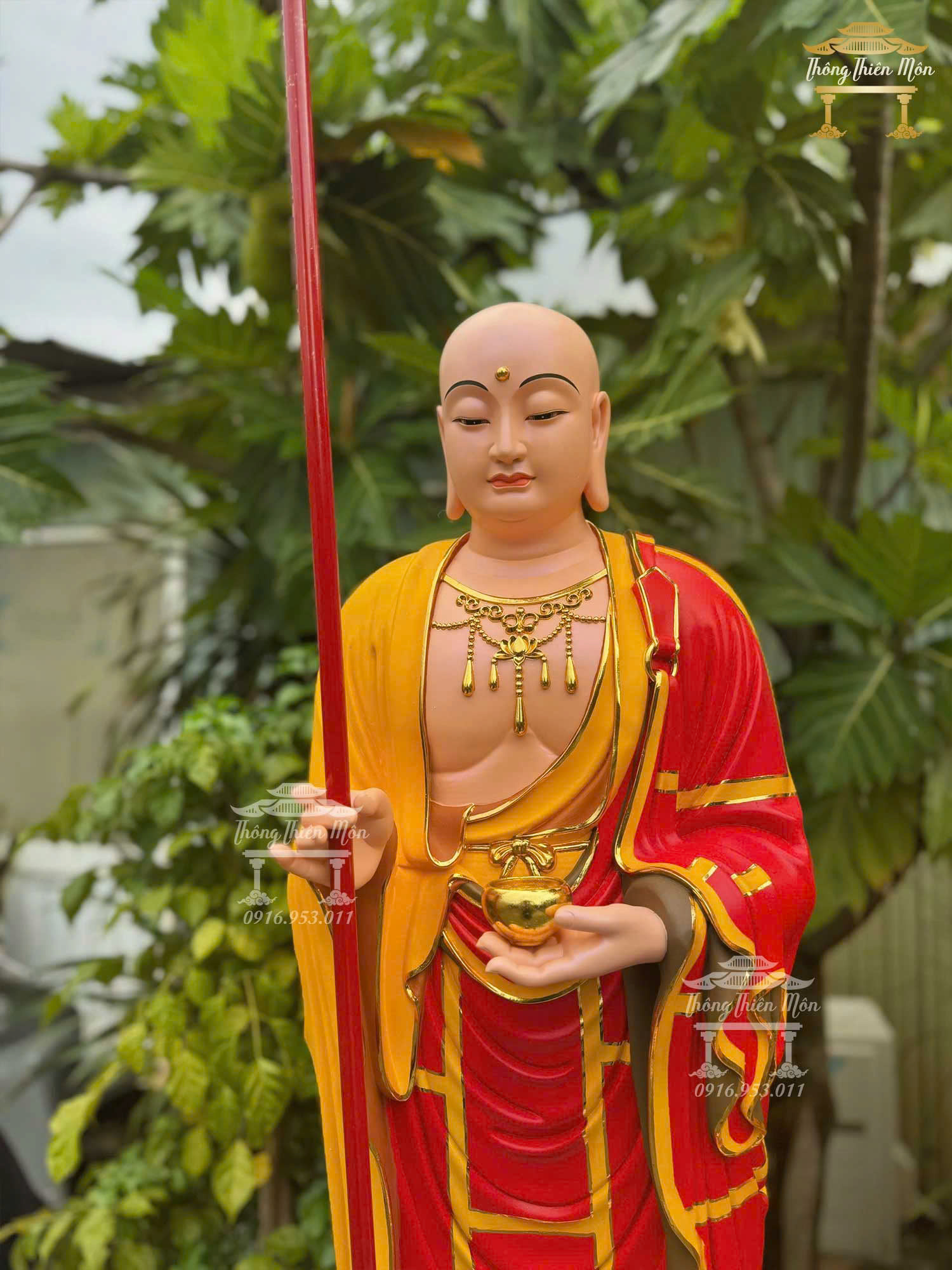 Tượng Địa Tạng Vương Bồ Tát, Kích thước 120cm, Y phước điền đỏ + vàng