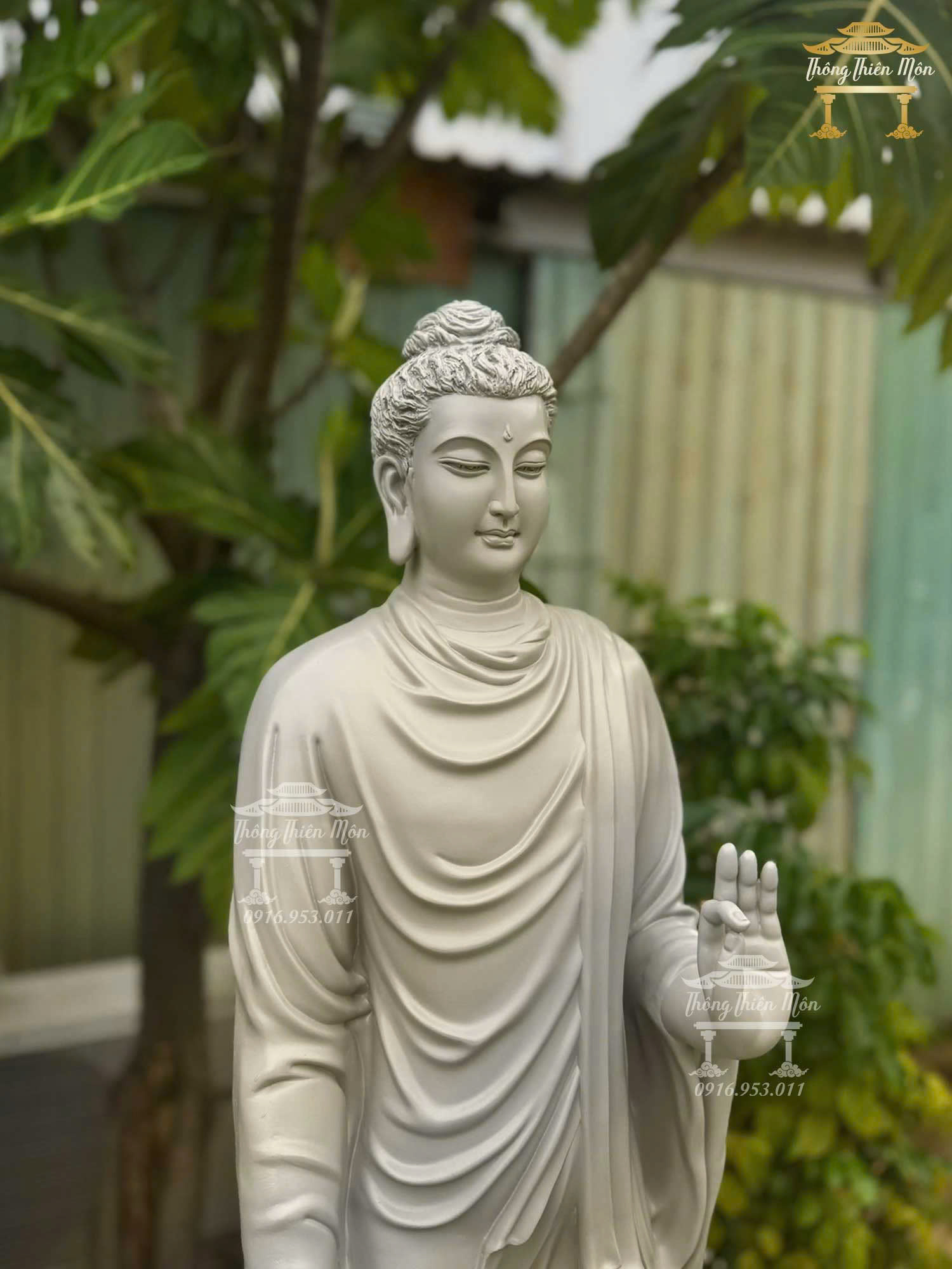 Tượng Đức Phật Ban Phước đứng, Kích thước 110cm, 1 màu xám xi măng