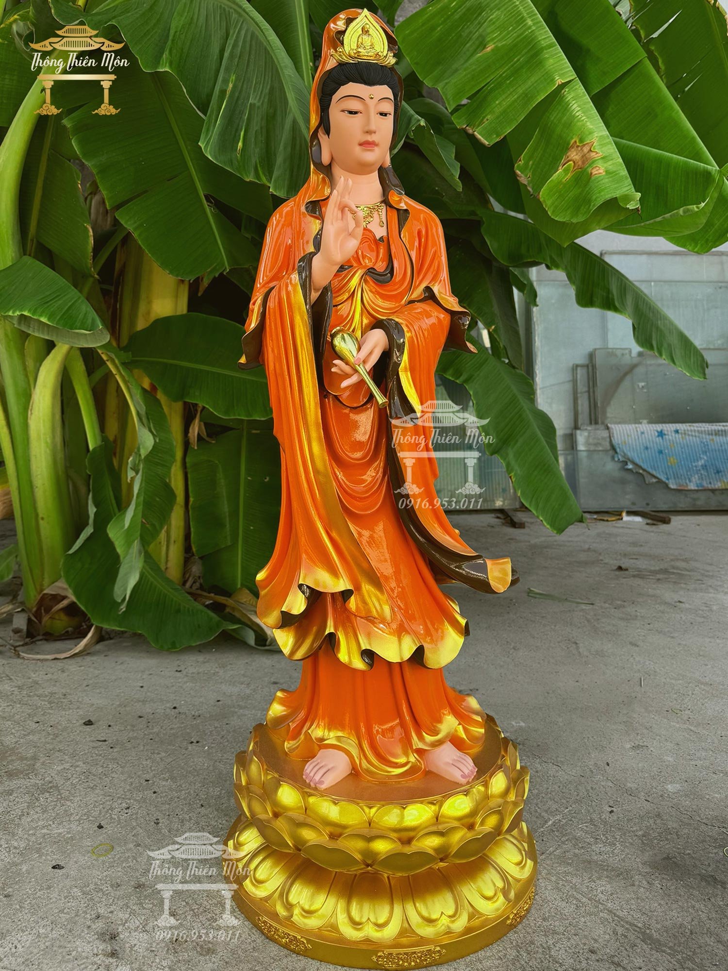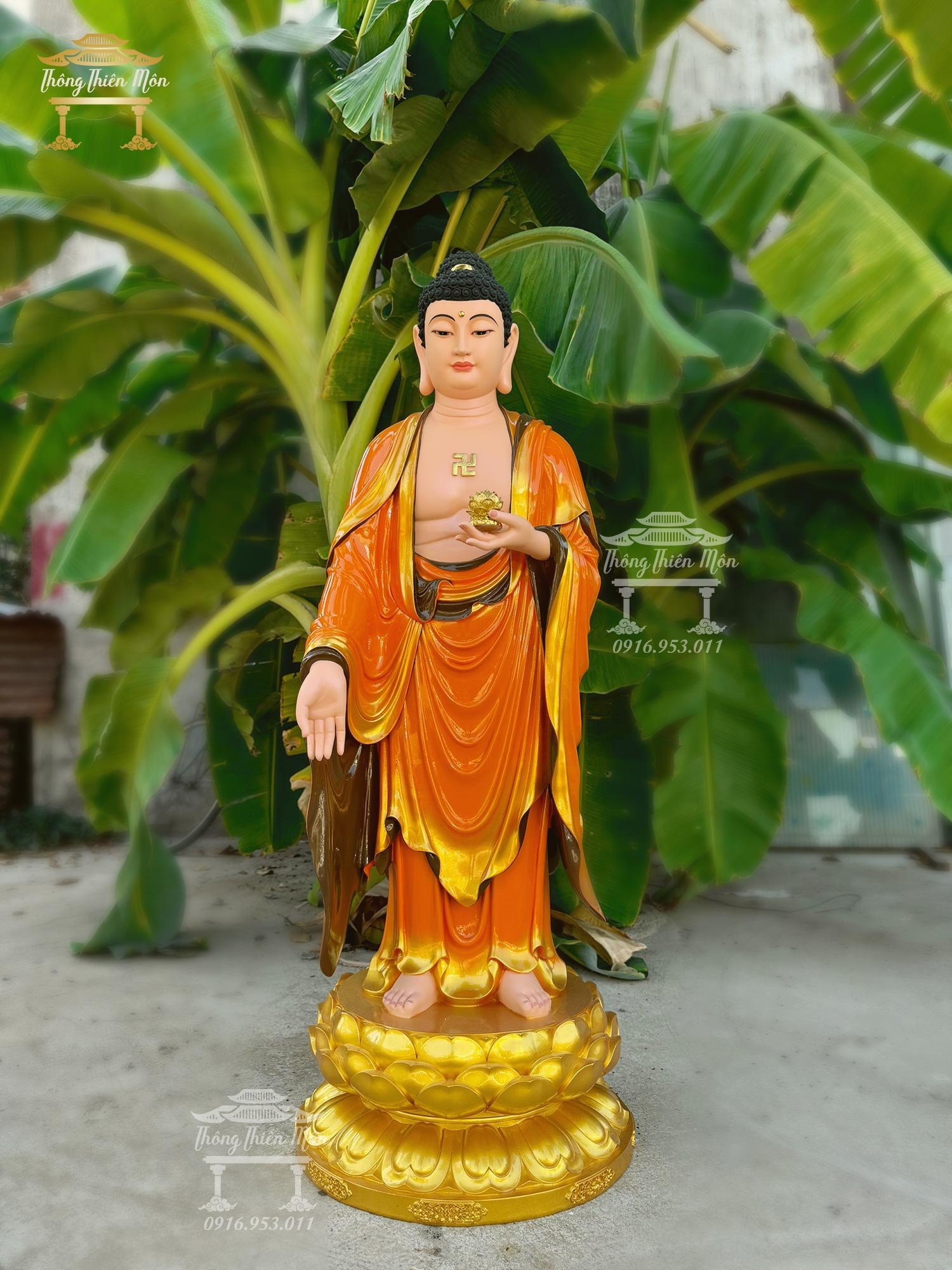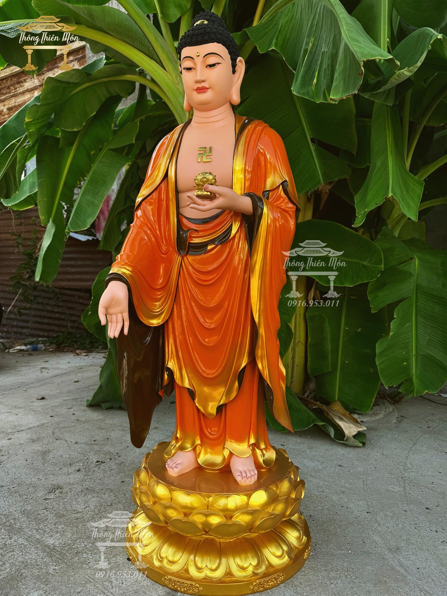 Tượng Tây Phương Tam Thánh, Kích thước 120cm, Sơn khoáng cam