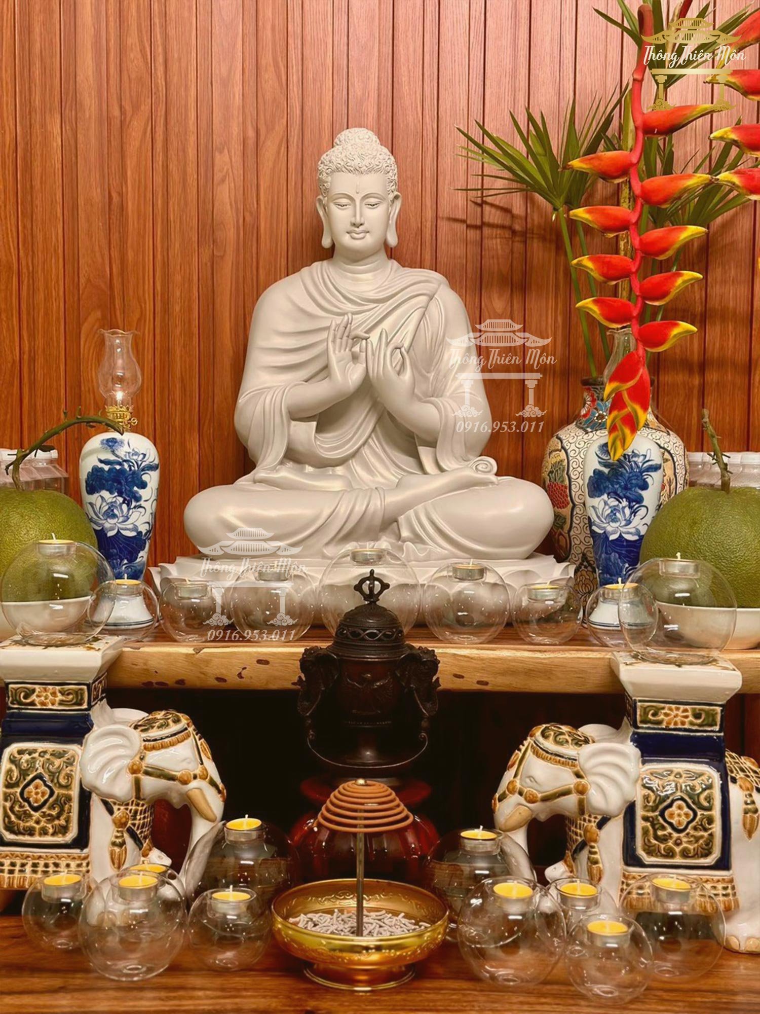 Tượng Thích Ca Chuyển Pháp Luân, 70cm, Đế sen 1 tầng, sơn 1 màu